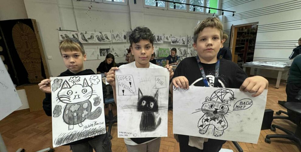 DZIEŃ ŻYCZLIWOŚCI!W tym dniu nasi czwartoklasiści zrealizowali przepiękne prace, wykorzystując swoją wiedzę z zakresu rysunku węglem. Narysowali figlarne, które mają nam przypominać jak ważne jest bycie życzliwym! Dziękuję, proszę, dobrze, że jesteś! Bardzo Cię lubię! Dobro wraca! To hasła, które powinny nam codziennie towarzyszyć.Zapraszamy do naszej
