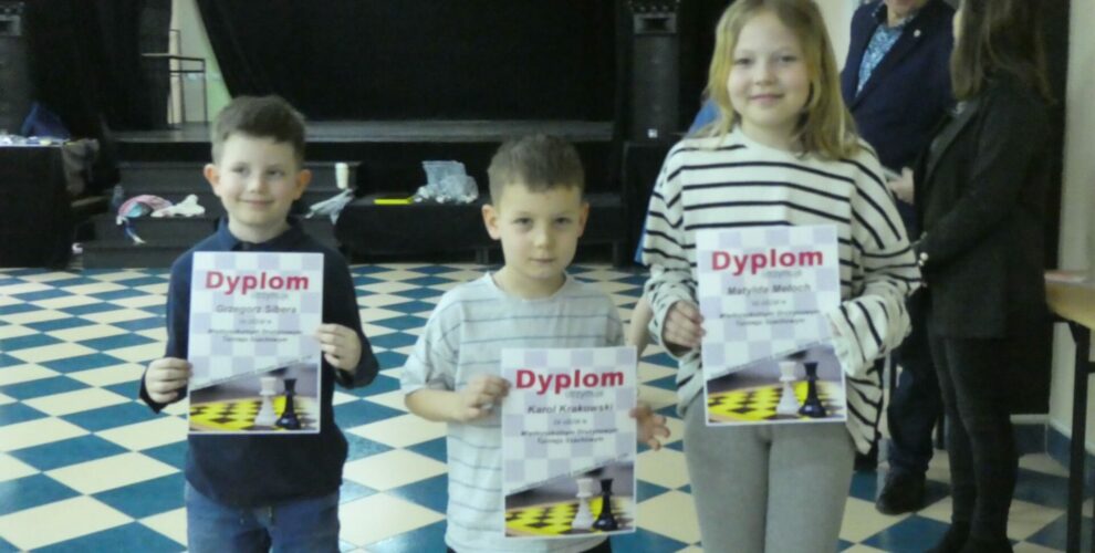 W dniu 31.03.2026r. nasi uczniowie wzięli udział w Międzyszkolnym Drużynowym Turnieju Szachowym dla klas I – III, który odbył się w Zespole Szkół Katolickich w Sieradzu. Pierwsza drużyna zajęła II miejsce (Mikołaj Włodarczyk 2b, Bartosz Zubrzycki 3c, Aleksandra Paś 3c). Druga drużyna zajęła 4 miejsce