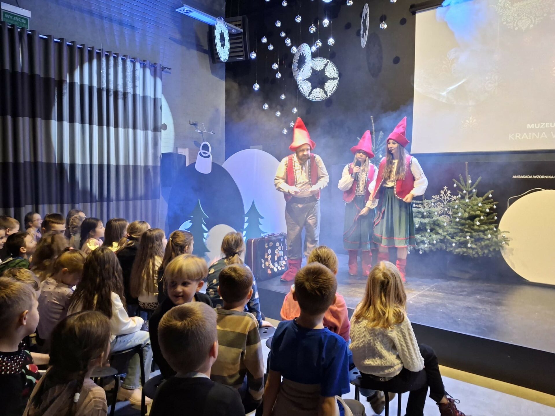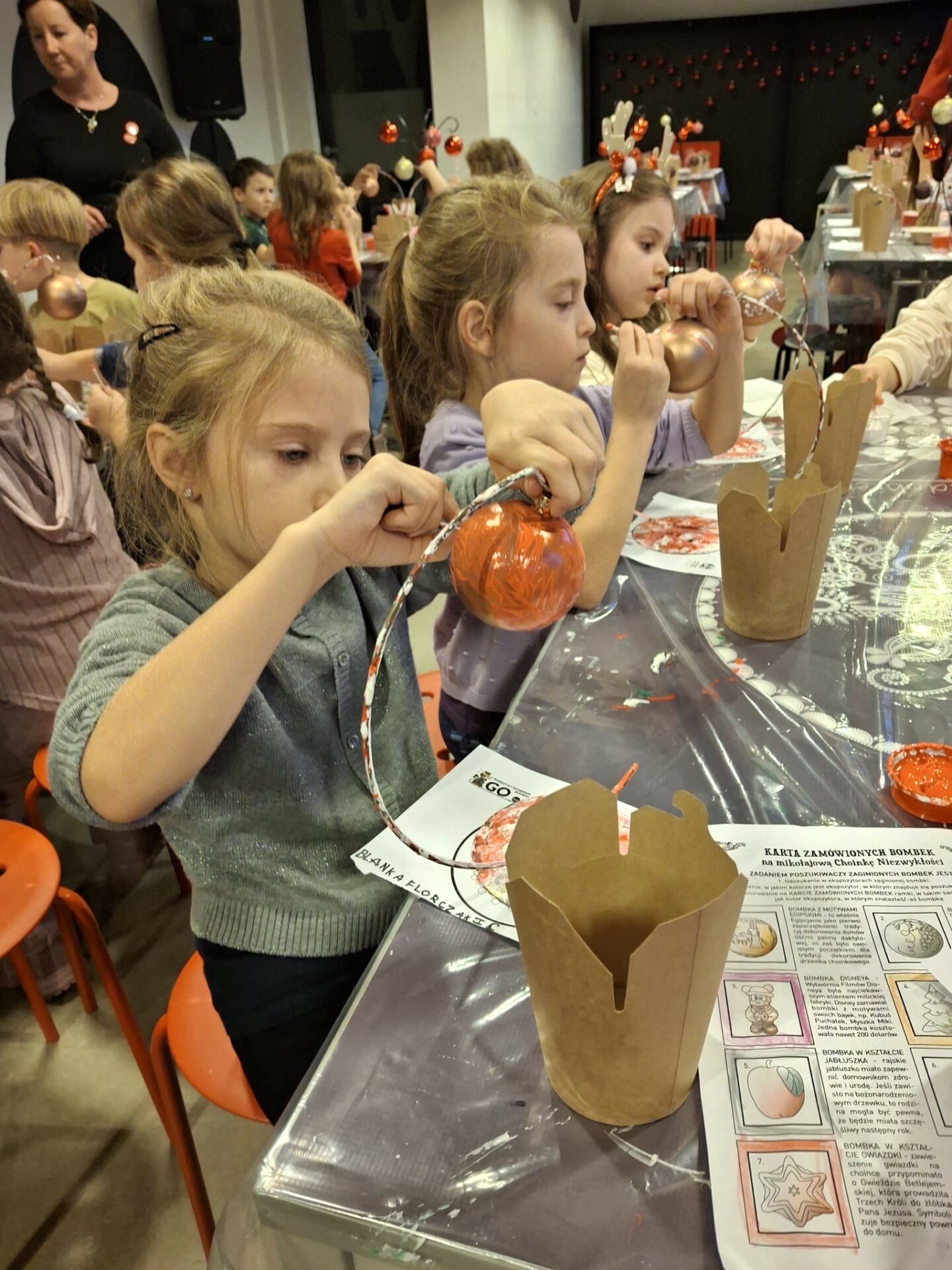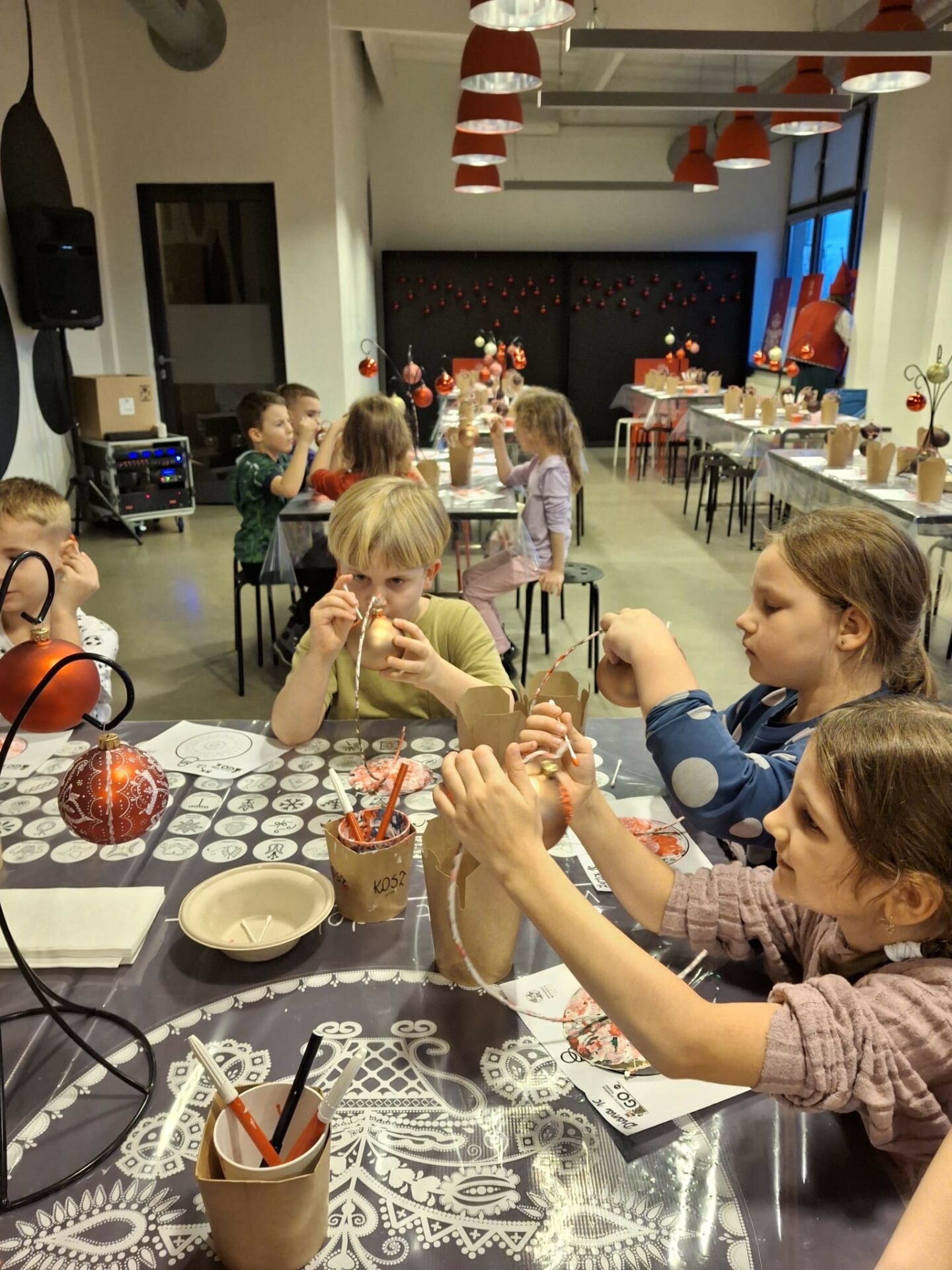 Najpierw spotkaliśmy się z Elfami, od których dowiedzieliśmy się, że tradycja ozdabiania choinki narodziła się w Niemczech. Podczas warsztatów rozwijaliśmy naszą kreatywność ozdabiając własne bombki i pierniczki dolnośląskim wzornikiem, czyli nakładaliśmy kropkowane wzorki. Niektórzy odkryli w sobie talent artystyczny – Picasso byłby dumny!