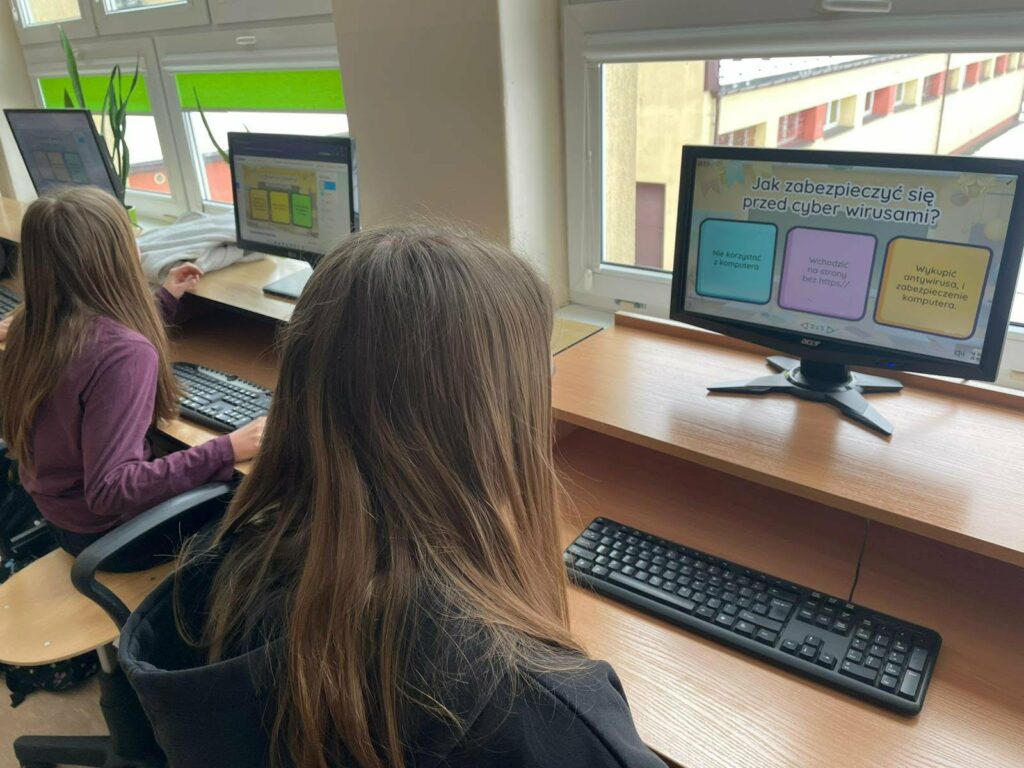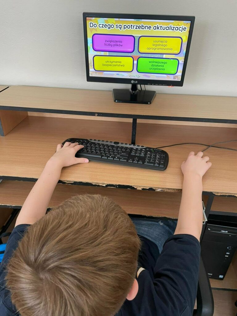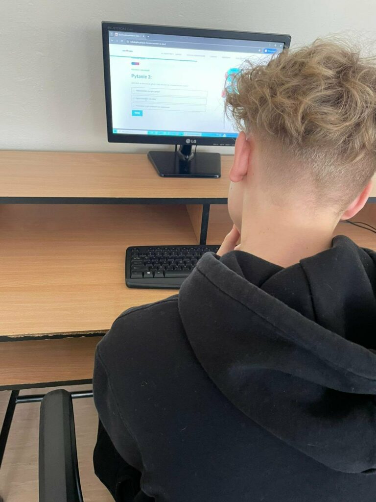- uczniowie rozwiązywali quizy i zadania sprawdzające wiedzę z zakresu bezpieczeństwa w Internecie.