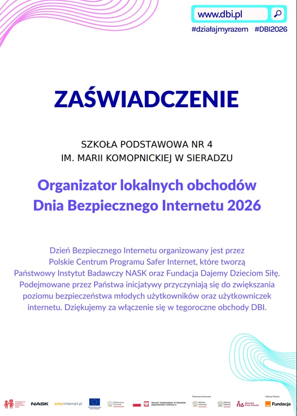 Nasza szkoła aktywnie włączyła się w działania związane z DBI. Ze względu na ferie zimowe wydarzenia realizowaliśmy w dniach 16–20 lutego 2026 r. W inicjatywie uczestniczyli uczniowie klas IV–VIII.