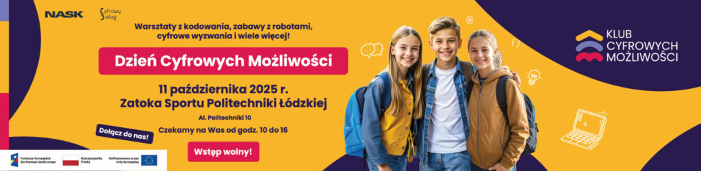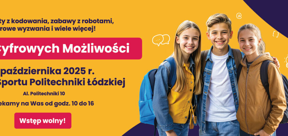 zabawy z robotami, przygody w wirtualnej rzeczywistości, strefa eksperymentowania STEM – to tylko wybrane atrakcje, jakie przygotowaliśmy w ramach Dnia Cyfrowych Możliwości. Wydarzenie odbędzie się już 11 października 2025 r. w Zatoce Sportu Politechniki Łódzkiej (Al. Politechniki 10). Do udziału w nim zapraszamy uczniów szkół podstawowych wraz z rodzicami. Wstęp wolny!