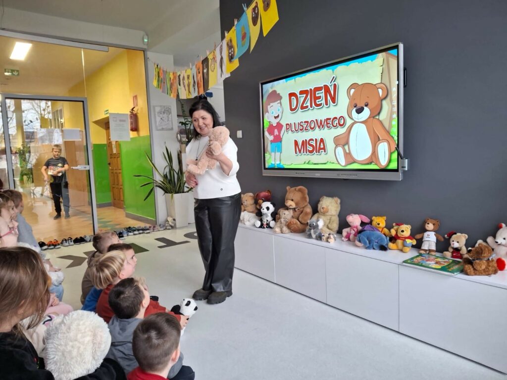 Z prezentacji dowiedzieli się o genezie Święta Pluszowego Misia, poznali różne niedźwiedzie żyjące na świecie, ich zwyczaje i sposób odżywiania. Mogli zobaczyć wystawę książek o misiach, które można wypożyczyć w szkolnej bibliotece, prace plastyczne starszych uczniów oraz wysłuchali opowiadania pt. Urodzinowa niespodzianka Misiaczka”.