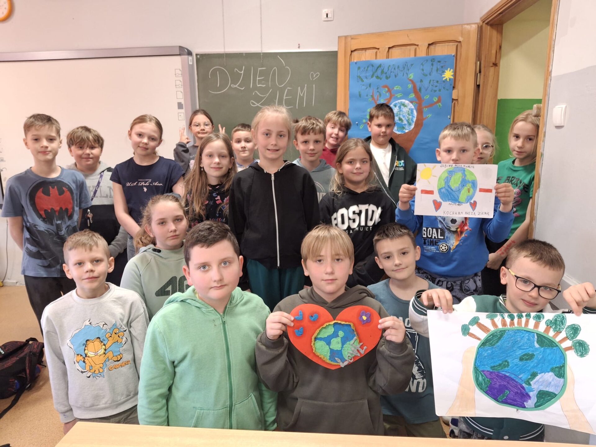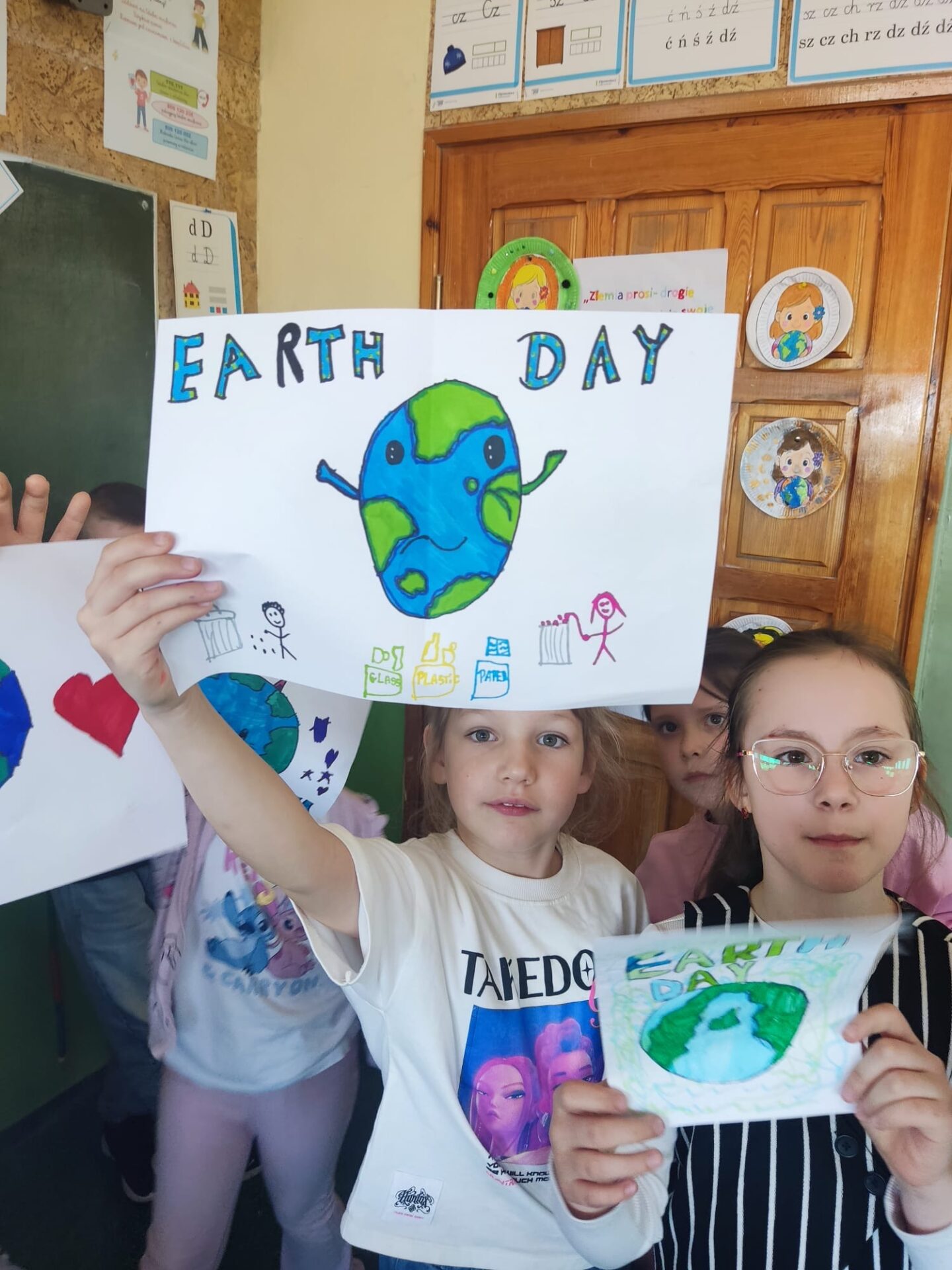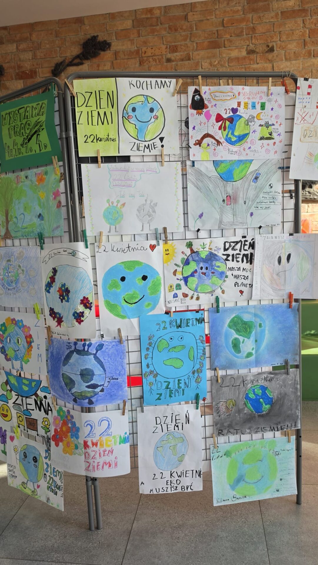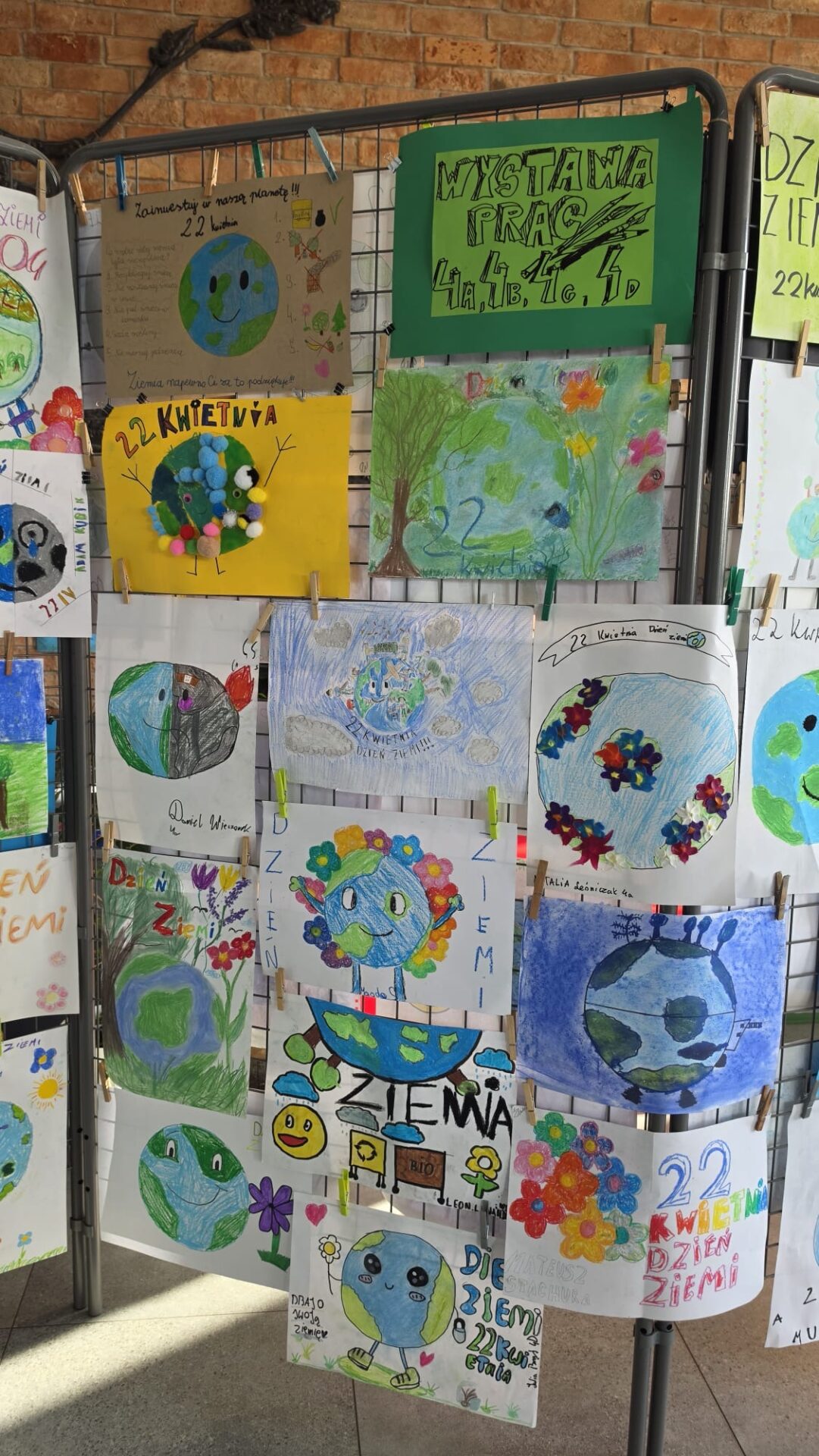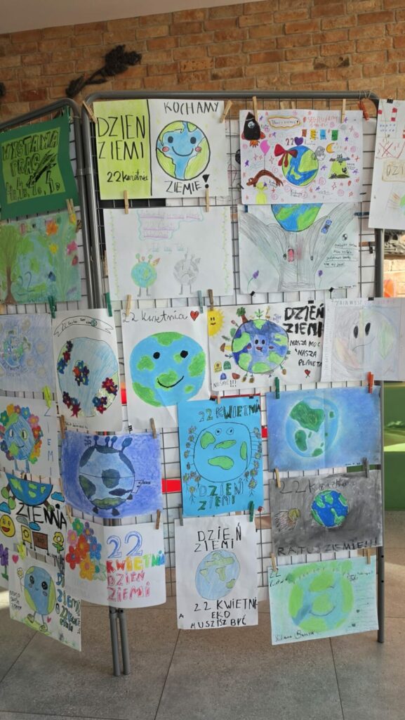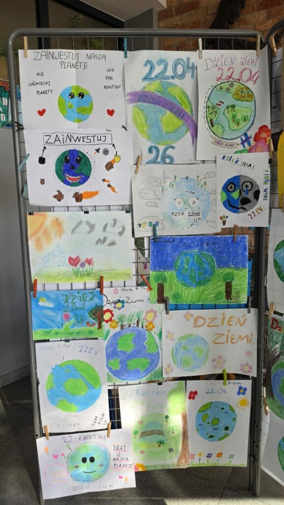Z okazji Dnia Ziemi w budynku A odbyły się różnorodne działania o charakterze edukacyjnym i artystycznym. Uczniowie klas młodszych uczestniczyli w lekcjach poświęconych ochronie środowiska, przygotowywali gazetki tematyczne oraz śpiewali piosenki związane z przyrodą. Klasy czwarte wykonały plakaty promujące postawy ekologiczne. Prace te zostały wyeksponowane w holu szkoły, stanowiąc piękne podsumowanie obchodów tego ważnego dnia.