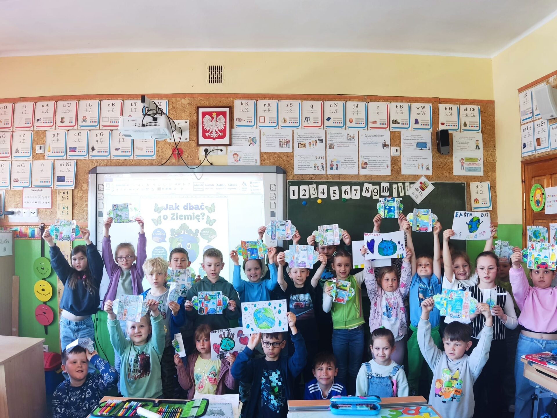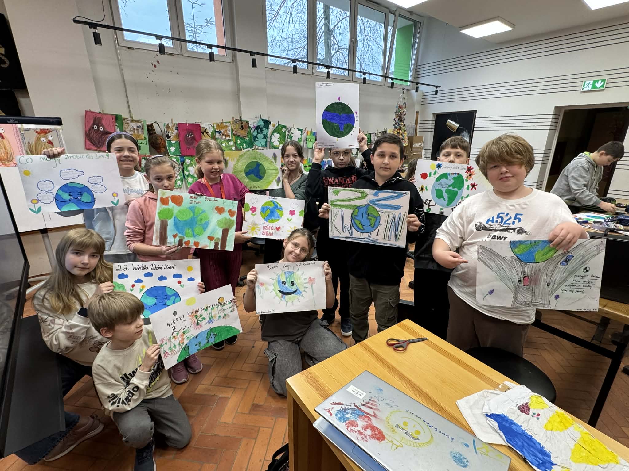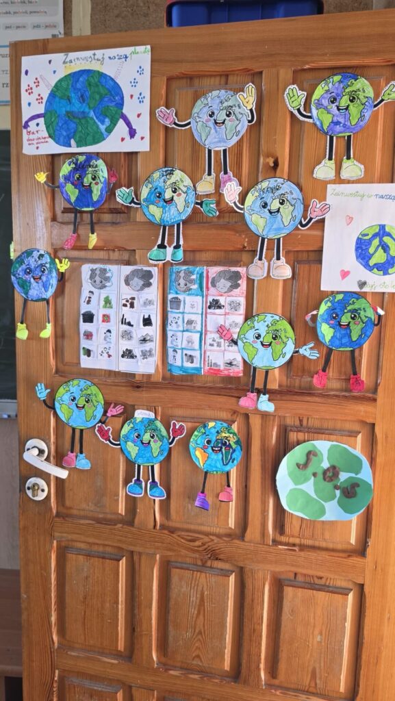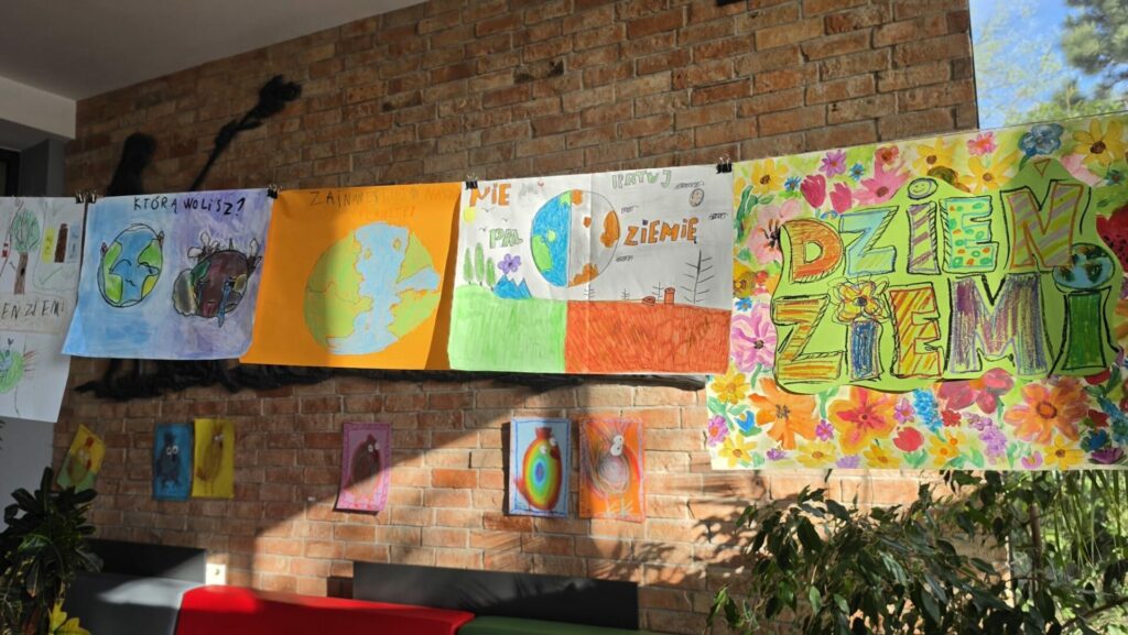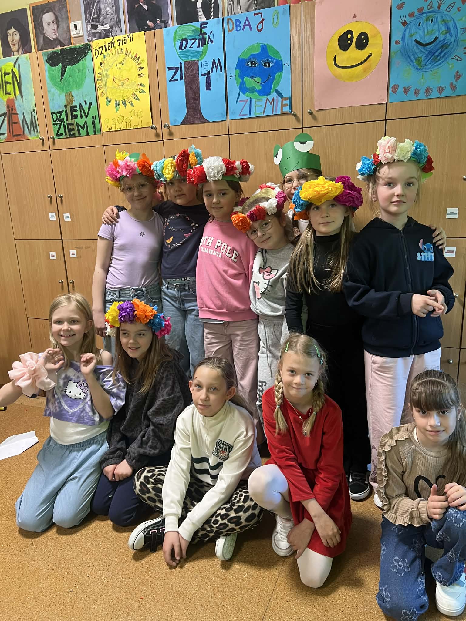 Z okazji Dnia Ziemi w budynku A odbyły się różnorodne działania o charakterze edukacyjnym i artystycznym. Uczniowie klas młodszych uczestniczyli w lekcjach poświęconych ochronie środowiska, przygotowywali gazetki tematyczne oraz śpiewali piosenki związane z przyrodą. Klasy czwarte wykonały plakaty promujące postawy ekologiczne. Prace te zostały wyeksponowane w holu szkoły, stanowiąc piękne podsumowanie obchodów tego ważnego dnia.