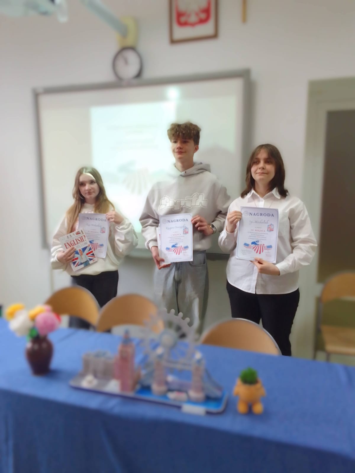 Uczniowie wykazali się doskonałą znajomością gramatyki i leksyki języka angielskiego. Do konkursu przygotowywały ich pani Magdalena Bratek oraz pani Małgorzata Stobiecka.