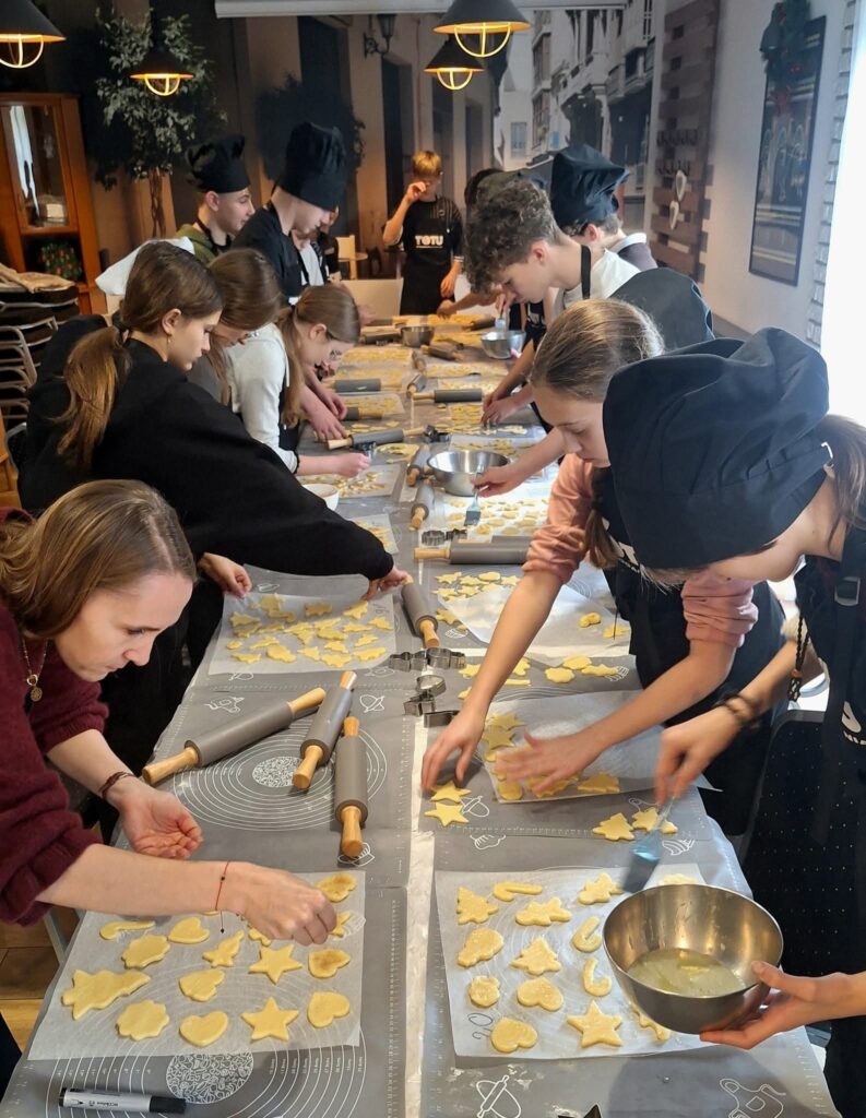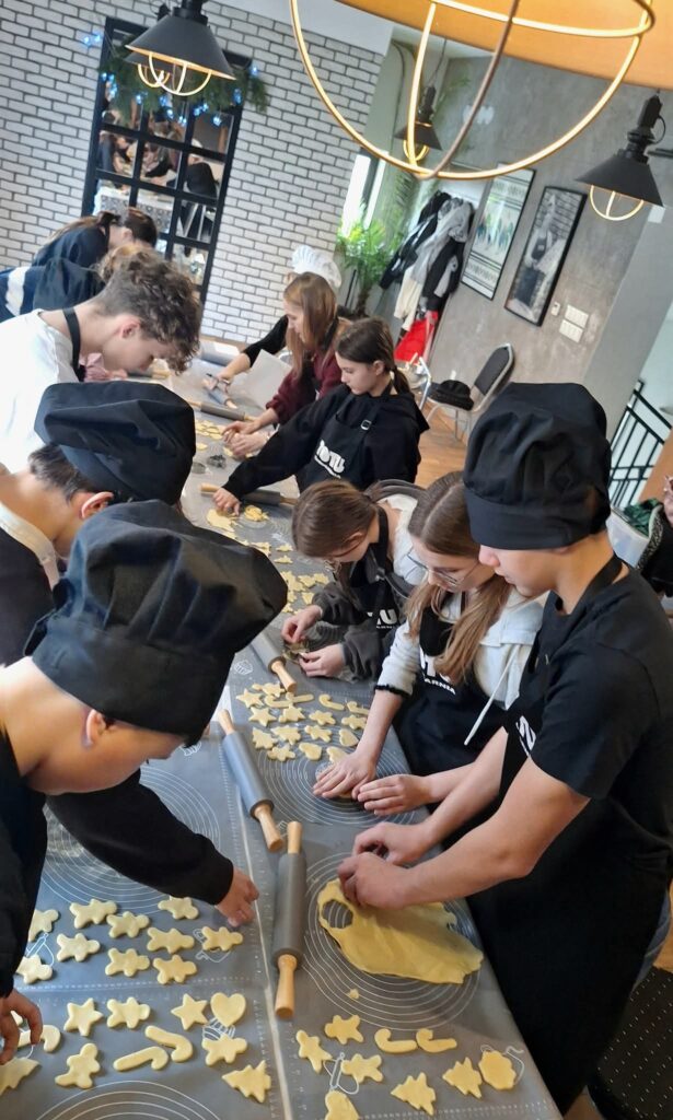 16 grudnia w naszej pierogarni znów zapanował świąteczny klimat. Gościliśmy klasę 7C ze Szkoły Podstawowej nr 4 i to już trzeci raz. Co roku spotykamy się przy innych warsztatach – tym razem przygotowywaliśmy kruche ciasteczka. Było kreatywnie, pachnąco i jak zawsze bardzo radośnie. Bardzo dziękujemy, że po raz kolejny wybraliście nasz lokal!