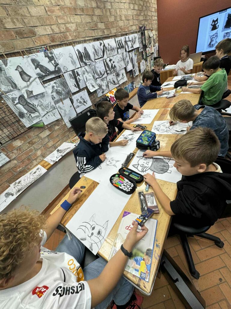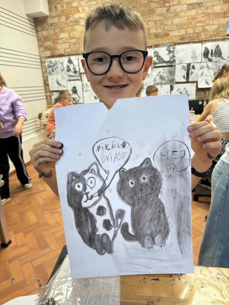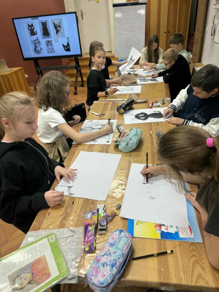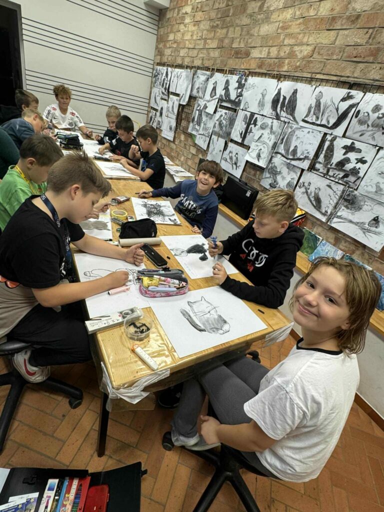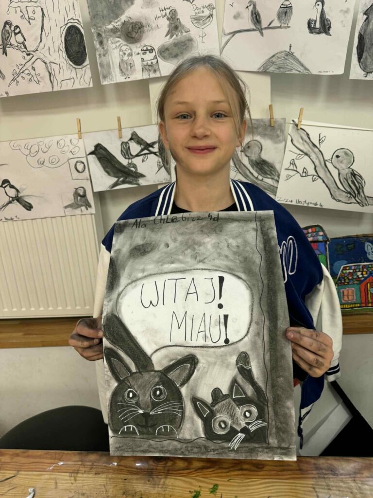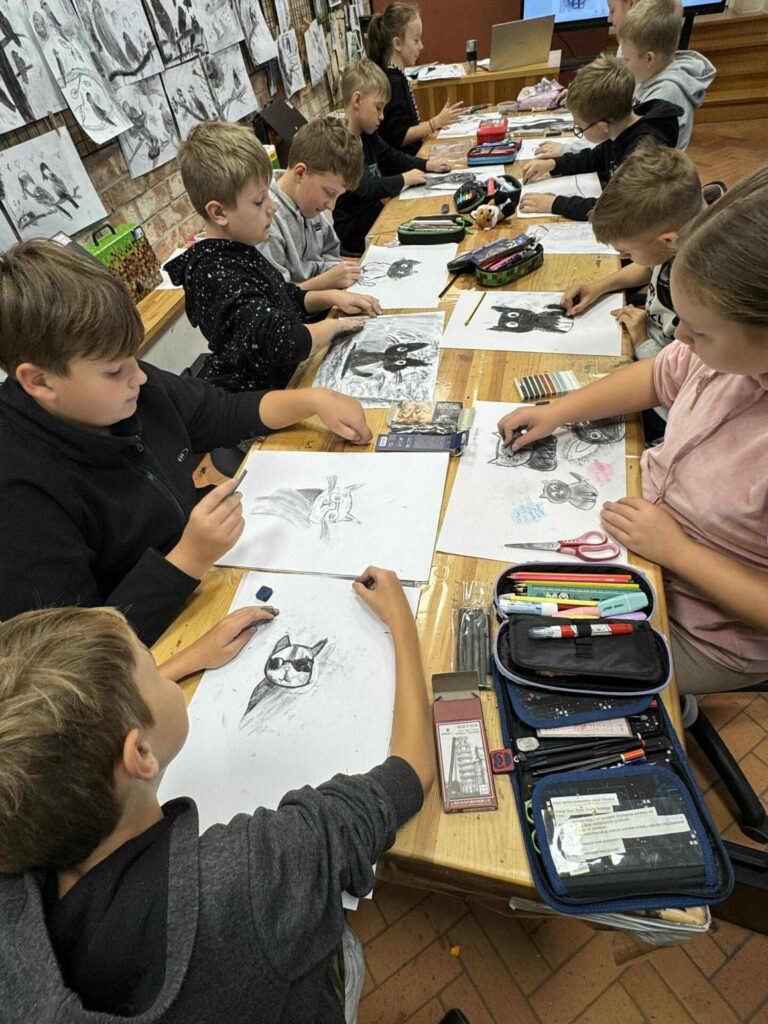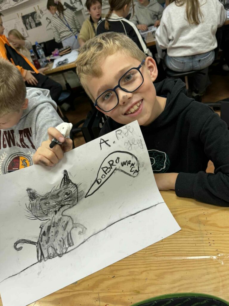 W tym dniu nasi czwartoklasiści zrealizowali przepiękne prace, wykorzystując swoją wiedzę z zakresu rysunku węglem.