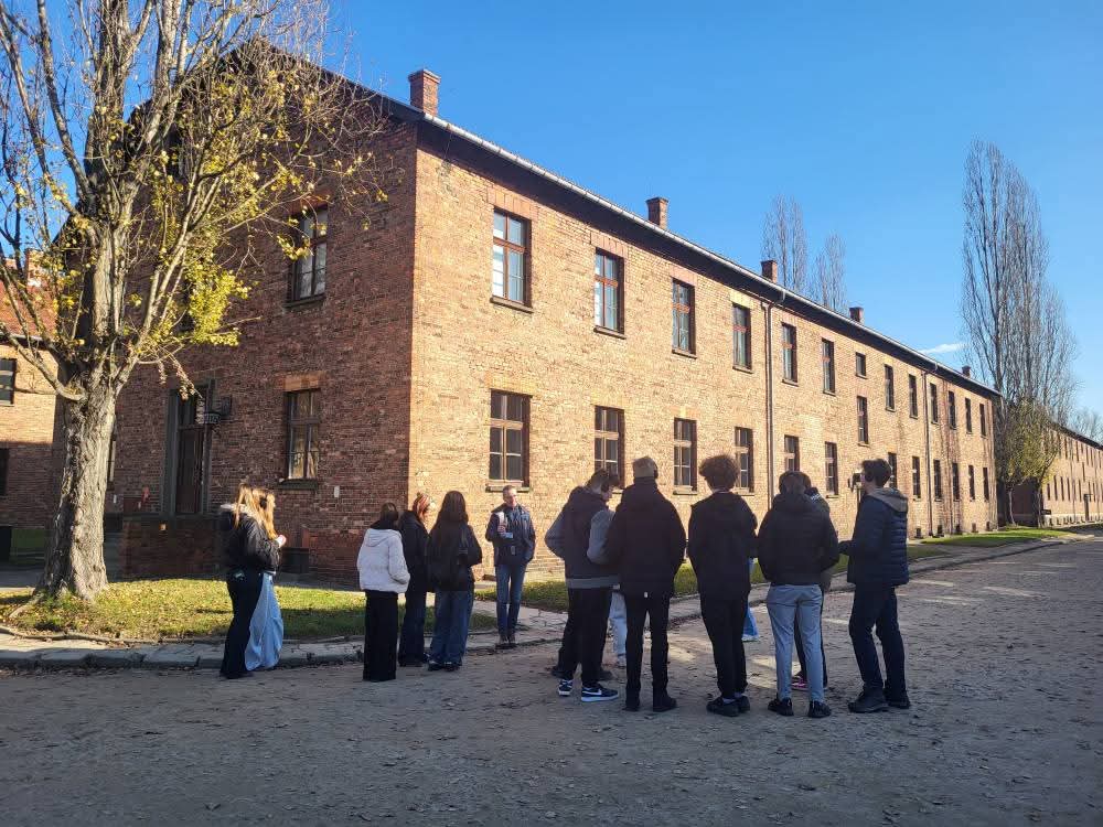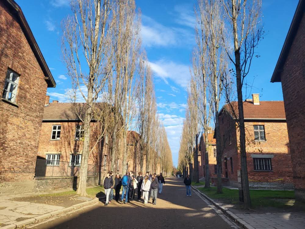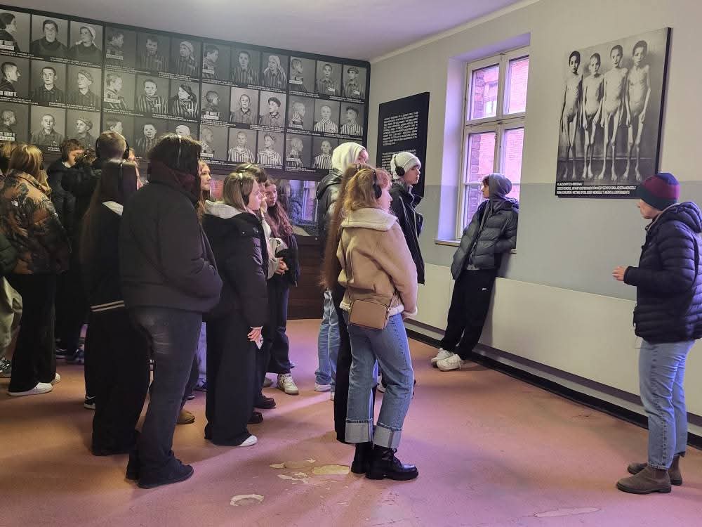 Zwiedzanie rozpoczęło się w części Auschwitz I, gdzie uczniowie zobaczyli oryginalne bloki więzienne, wystawy dokumentujące życie i śmierć więźniów oraz słynny napis „Arbeit macht frei”. Przewodnik opowiadał o codzienności w obozie, nieludzkich warunkach, eksperymentach medycznych oraz skali zbrodni, jaka miała tam miejsce.
