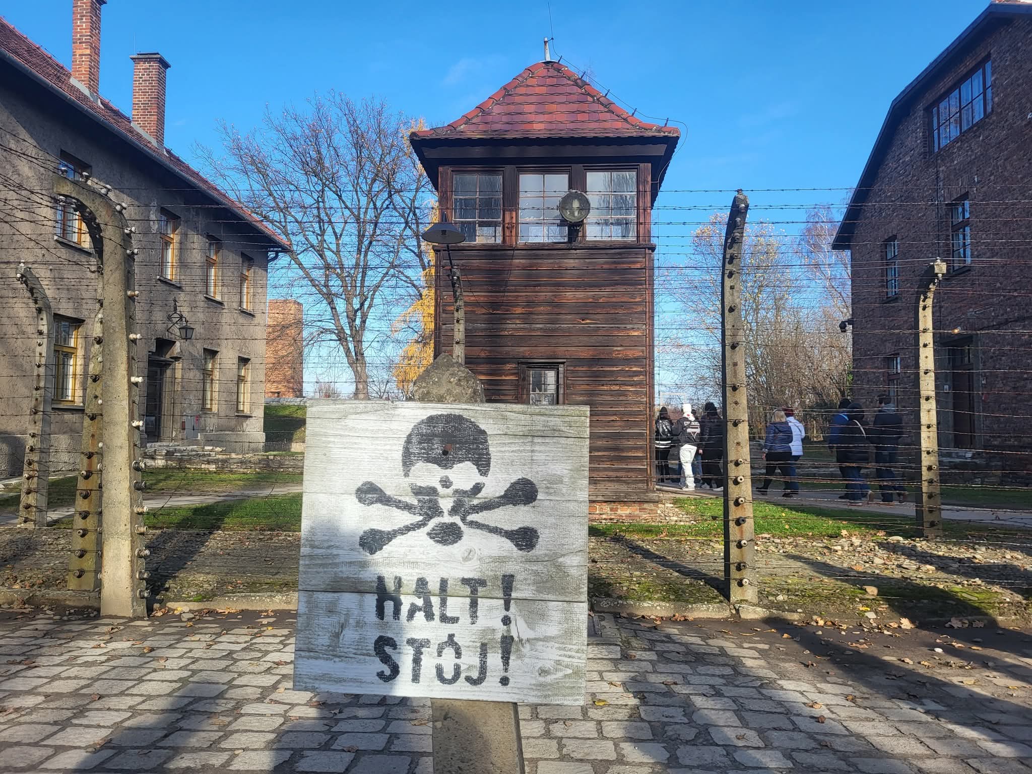 Zwiedzanie rozpoczęło się w części Auschwitz I, gdzie uczniowie zobaczyli oryginalne bloki więzienne, wystawy dokumentujące życie i śmierć więźniów oraz słynny napis „Arbeit macht frei”. Przewodnik opowiadał o codzienności w obozie, nieludzkich warunkach, eksperymentach medycznych oraz skali zbrodni, jaka miała tam miejsce.
