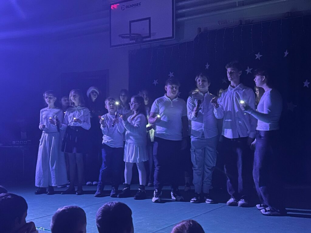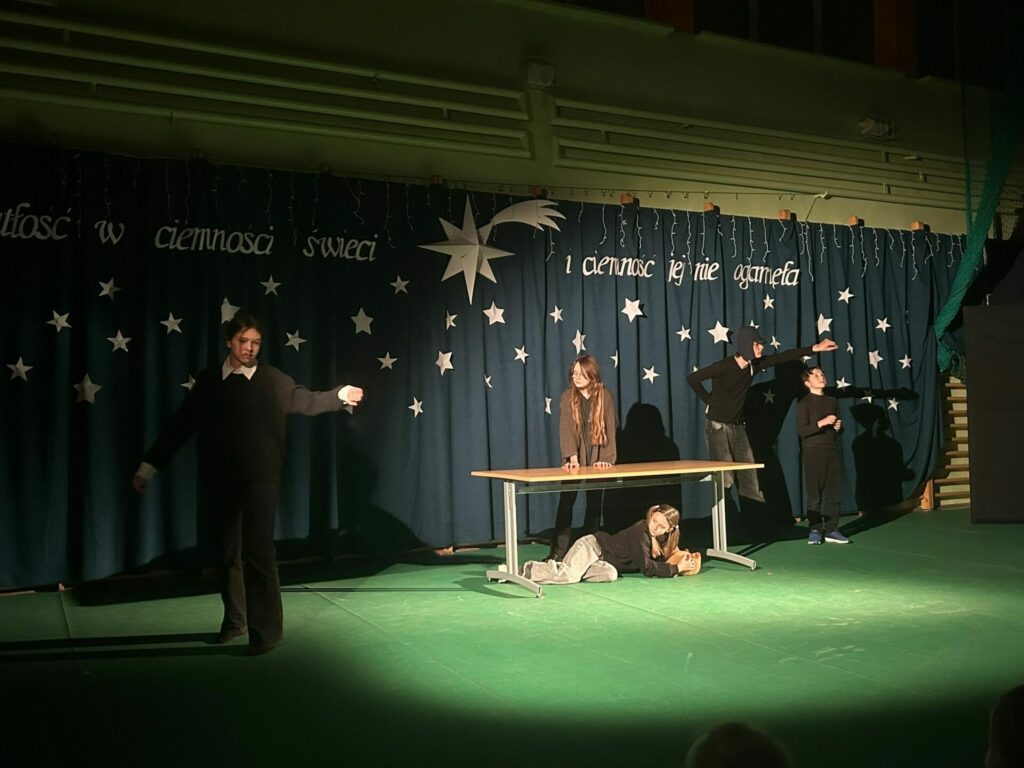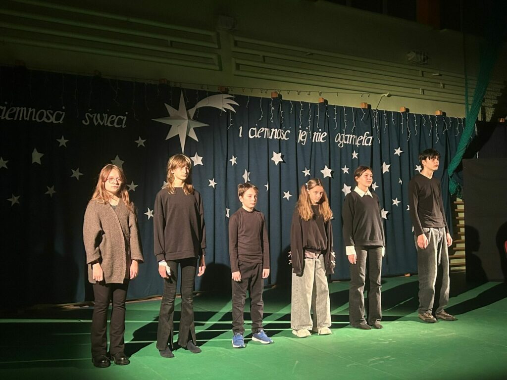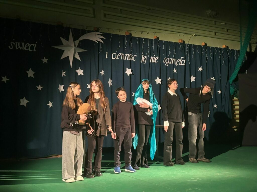 11 grudnia o godzinie 17.00 szkolne koło teatralne oraz chór zaprezentowały przedstawienie wigilijne. Jego motywem przewodnim było światło, które „świeci w ciemności” i którego „nie ogarnia ciemność”. Świąteczny czas ma magiczną moc – milkną spory, a ludzie stają się dla siebie lepsi, życzliwsi, skorzy do pomocy. Życzymy wszystkim jak najwięcej tego wewnętrznego światła, które potrafi zdziałać cuda 🙂