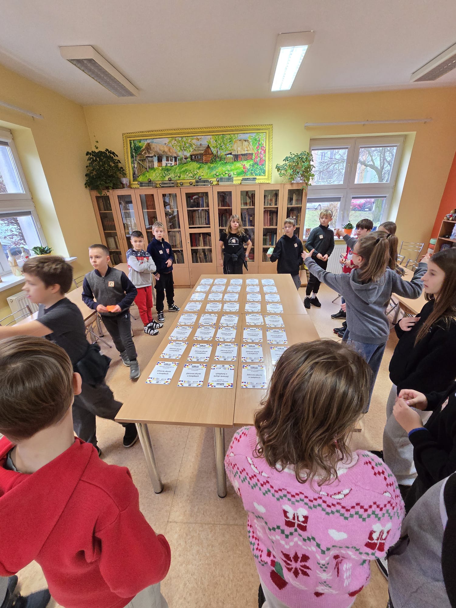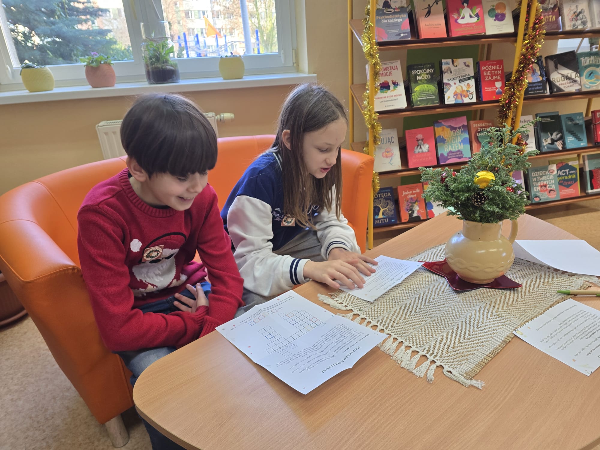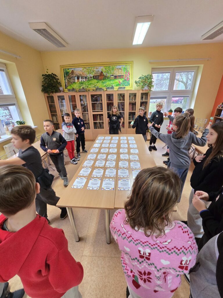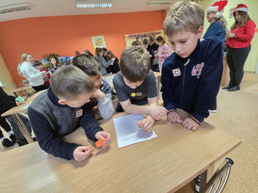 Dnia 18.12.2025 r. uczniowie klasy 4d Szkoły Podstawowej nr 4 im. Marii Konopnickiej uczestniczyli w zajęciach w SOWIE – Strefie Odkrywania, Wyobraźni i Aktywności w bibliotecznym escape roomie pt. „Na ratunek świątecznym relacjom”, zorganizowanym przez CREWŁ Bibliotekę Pedagogiczną w Sieradzu w ramach BO Województwa Łódzkiego 2025 i projektu „Zdrowie ukryte w książkach”.