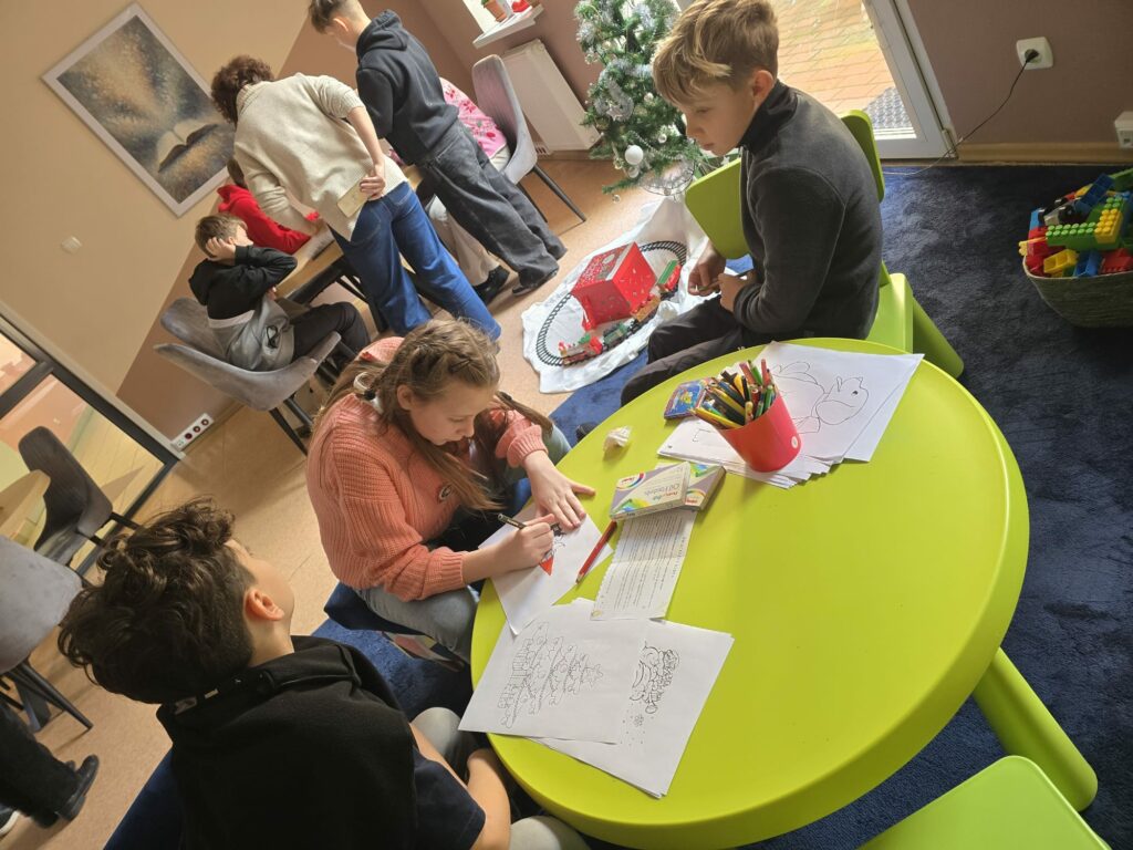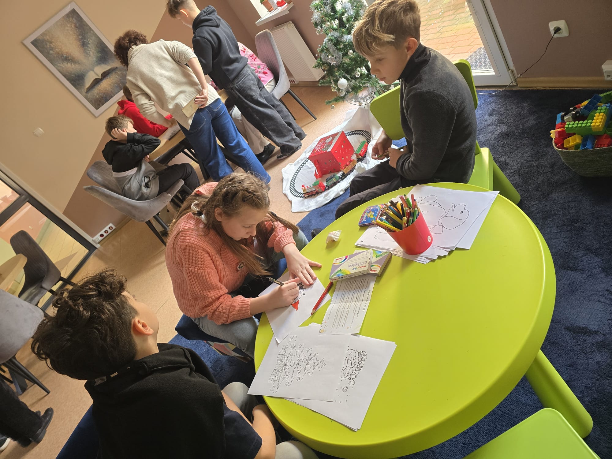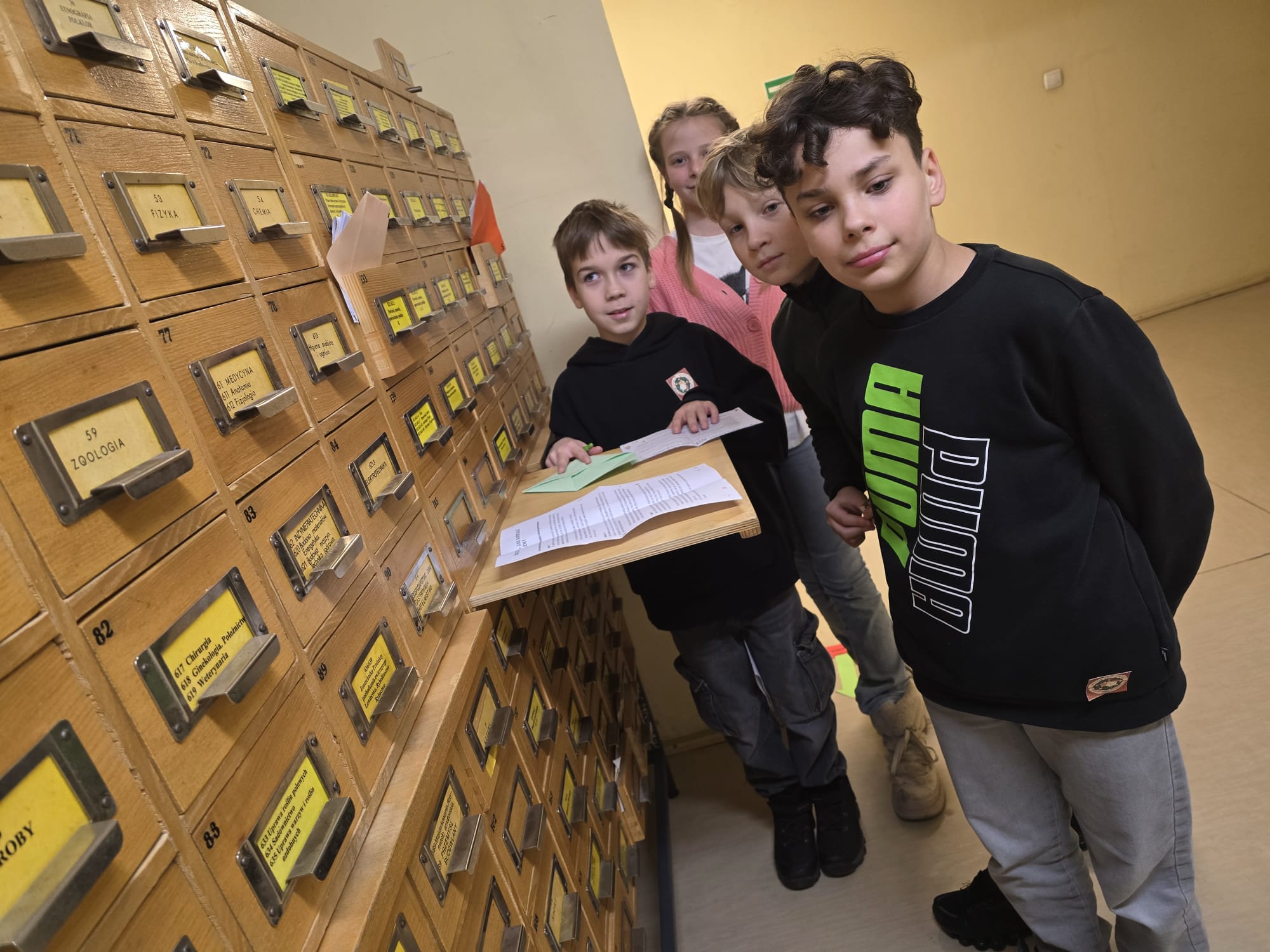 Dnia 18.12.2025 r. uczniowie klasy 4d Szkoły Podstawowej nr 4 im. Marii Konopnickiej uczestniczyli w zajęciach w SOWIE – Strefie Odkrywania, Wyobraźni i Aktywności w bibliotecznym escape roomie pt. „Na ratunek świątecznym relacjom”, zorganizowanym przez CREWŁ Bibliotekę Pedagogiczną w Sieradzu w ramach BO Województwa Łódzkiego 2025 i projektu „Zdrowie ukryte w książkach”.