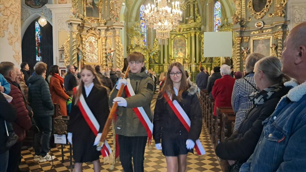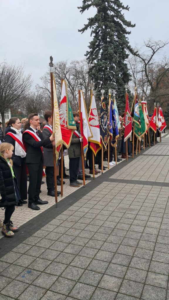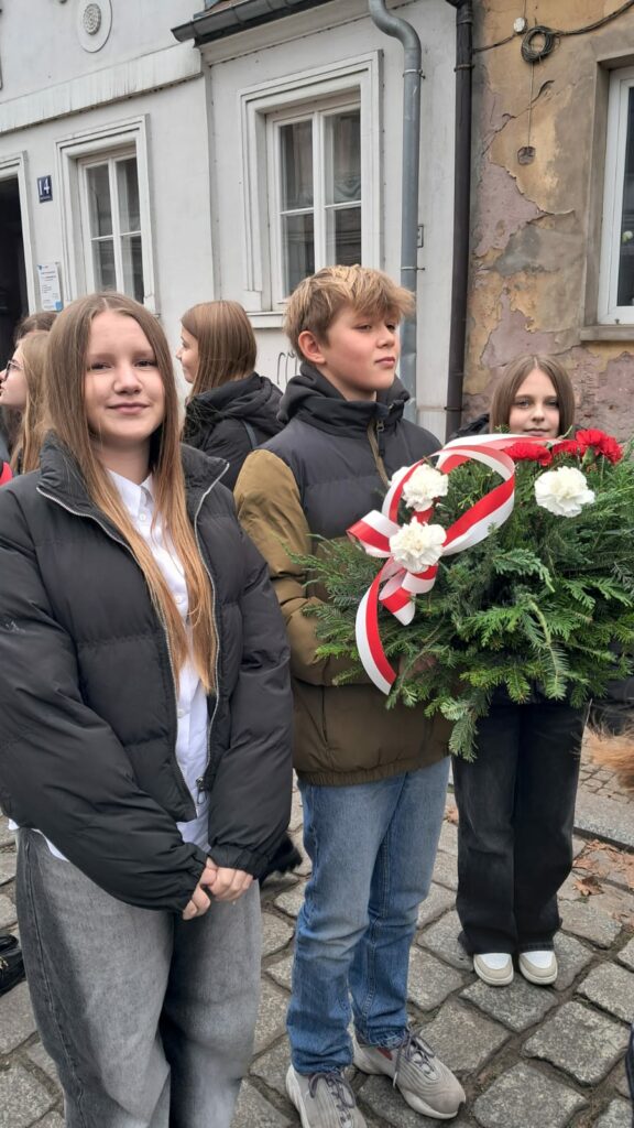 W dniu 11 listopada 2025r. delegacja klasy 7a w składzie: Zofia Kujawińska, Marcel Szewczyk oraz Karolina Zghoba reprezentowali naszą szkołę podczas sieradzkich obchodów Dnia Niepodległości. Uczniowie wzięli udział w uroczystej mszy świętej w intencji Ojczyzny oraz w oficjalnych obchodach na placu przed Pomnikiem Marszałka Józefa Piłsudskiego. Była to wspaniała lekcja patriotyzmu i okazja do wspólnego świętowania 107. rocznicy odzyskania przez Polskę niepodległości. Poczet sztandarowy godnie reprezentowali: Adam Szczepaniak, Jakub Gawron, Magdalena Michalak, Julia Zaręba, Lena Kępska, Aleksandra Sowała, Maja Matusiak, Kacper Pawełski, Zuzanna Pisarek, Urszula Kołodziej, Lena Jarmuszkiewicz, Jakub Żbik oraz Mateusz Szymala.