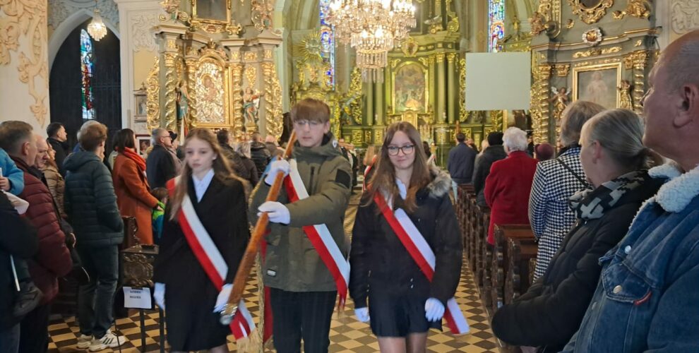 W dniu 11 listopada 2025r. delegacja klasy 7a w składzie: Zofia Kujawińska, Marcel Szewczyk oraz Karolina Zghoba reprezentowali naszą szkołę podczas sieradzkich obchodów Dnia Niepodległości. Uczniowie wzięli udział w uroczystej mszy świętej w intencji Ojczyzny oraz w oficjalnych obchodach na placu przed Pomnikiem Marszałka Józefa Piłsudskiego. Była to wspaniała lekcja patriotyzmu i okazja do wspólnego świętowania 107. rocznicy odzyskania przez Polskę niepodległości. Poczet sztandarowy godnie reprezentowali: Adam Szczepaniak, Jakub Gawron, Magdalena Michalak, Julia Zaręba, Lena Kępska, Aleksandra Sowała, Maja Matusiak, Kacper Pawełski, Zuzanna Pisarek, Urszula Kołodziej, Lena Jarmuszkiewicz, Jakub Żbik oraz Mateusz Szymala.
