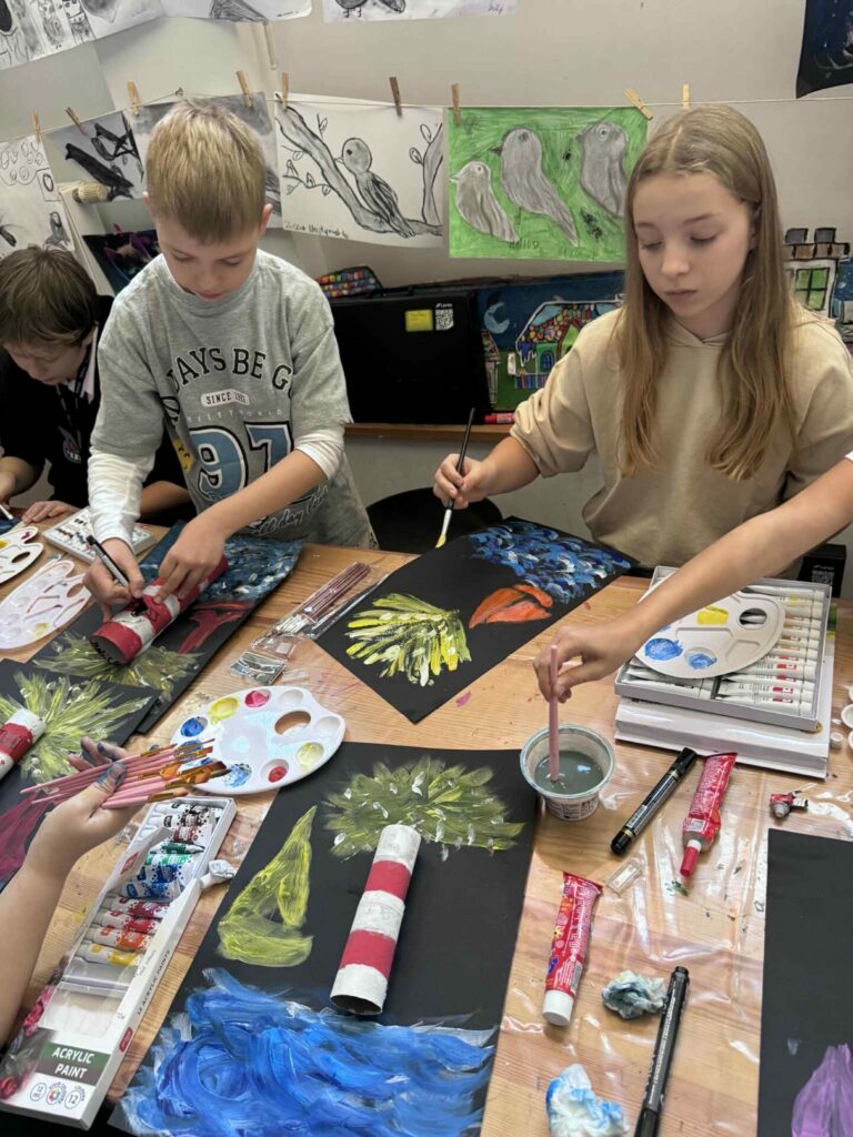 Nasi czwartoklasiści właśnie zmierzyli się z wakacyjnymi wspomnieniami i wykonali piękne prace, które wymagały od nich nie tylko prezencji ale też umiejętności mieszania barw!