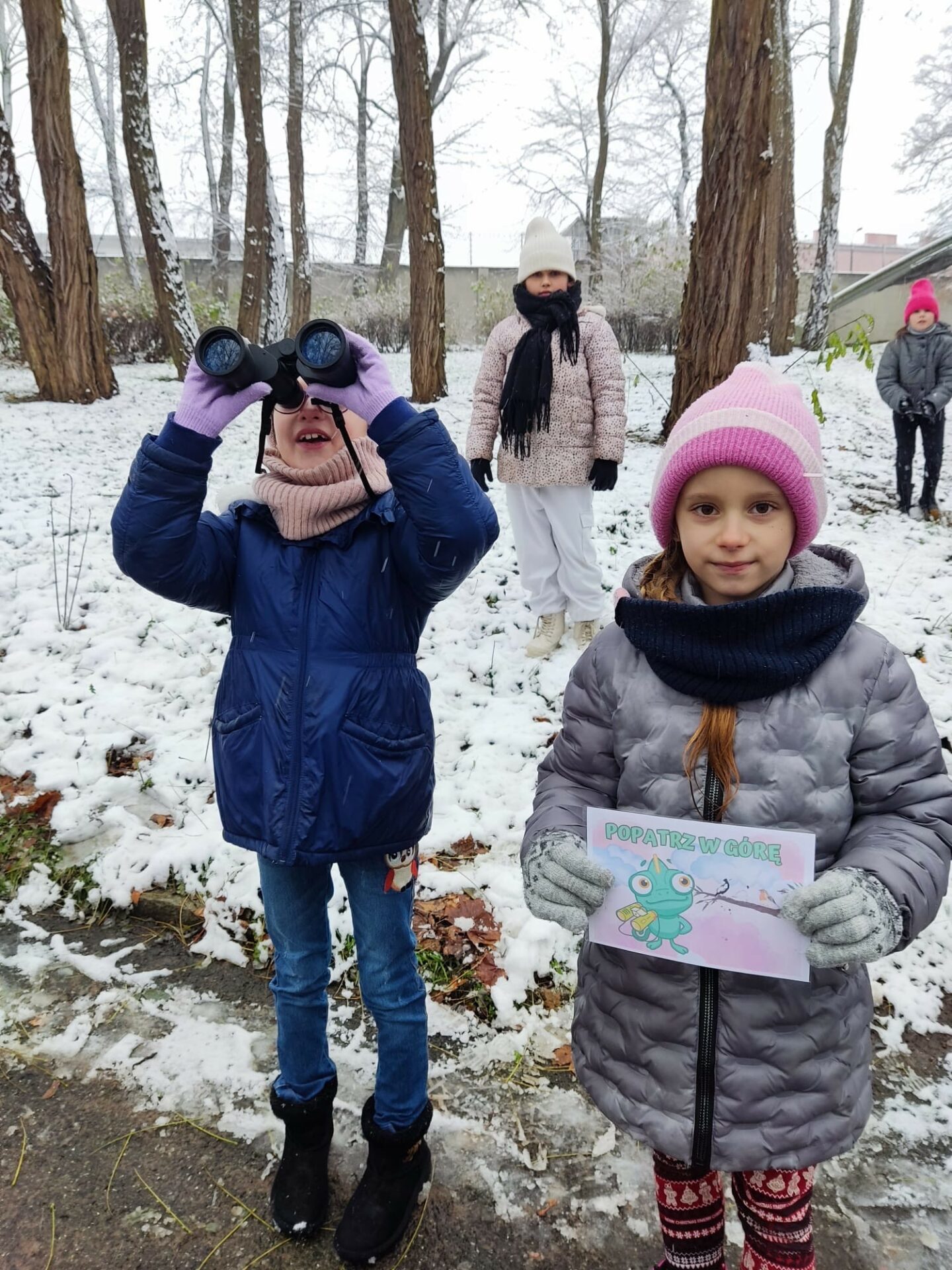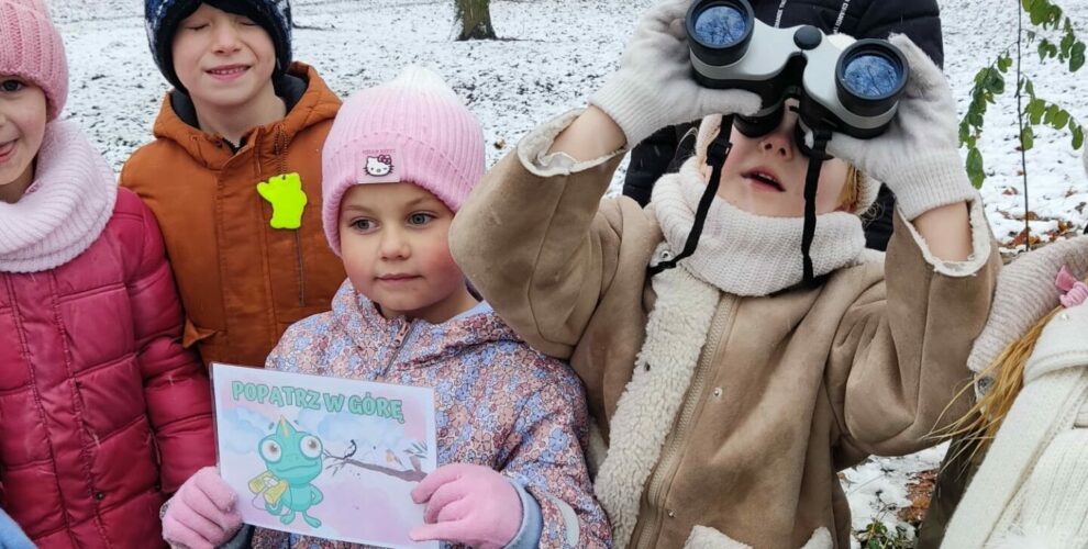 Klasa 1b w dniu dzisiejszym zrealizowała pierwsze zadanie z projektu Kameleon – „Popatrz w górę”. Podczas wyjścia do parku miejskiego uczniowie korzystali z lornetek, dzięki czemu mogli podziwiać świat przyrody z zupełnie nowej perspektywy – obserwowali korony drzew, ptaki oraz zmieniające się jesienne barwy.