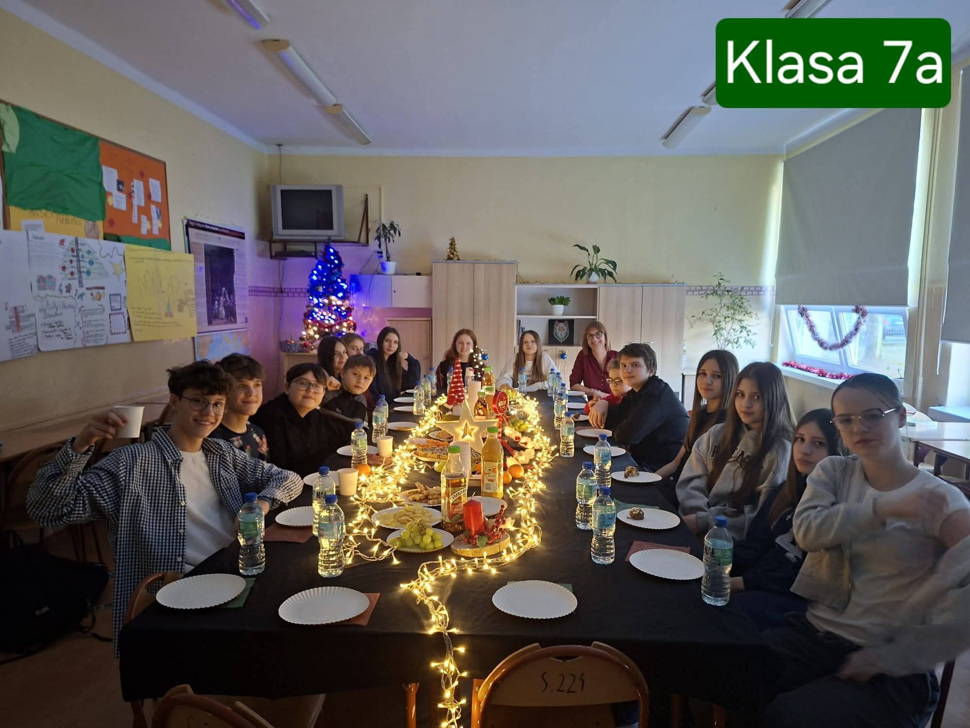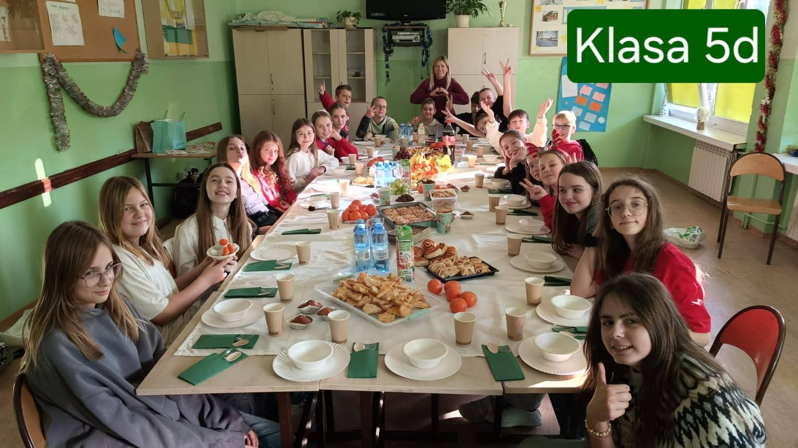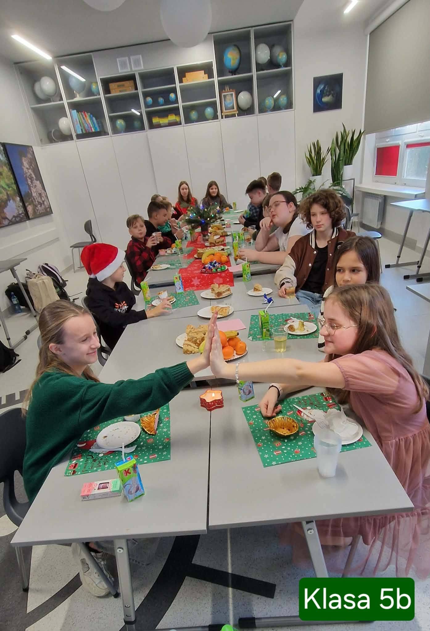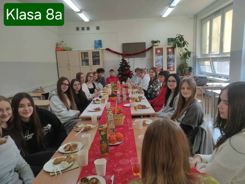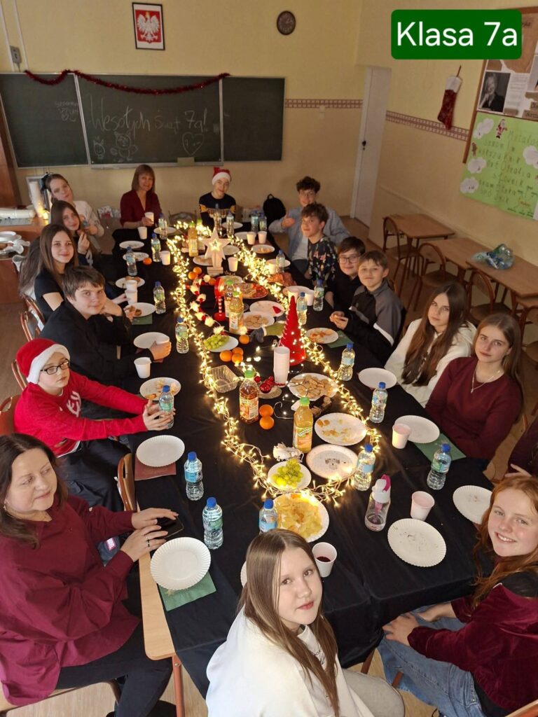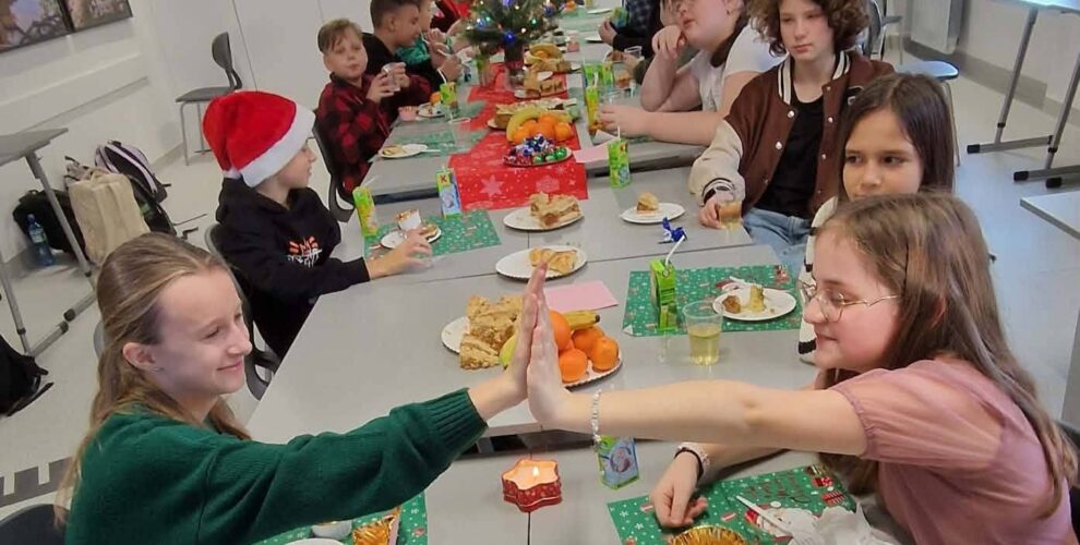 Spotkania wigilijne w klasach V–VIII to był wyjątkowy czas, który pozwolił uczniom na chwilę zatrzymania się w przedświątecznym zabieganiu. Wspólne kolędowanie, składanie życzeń oraz dzielenie się opłatkiem sprzyjały budowaniu serdecznej atmosfery i wzmacnianiu relacji rówieśniczych. To także okazja do rozmów o tradycjach bożonarodzeniowych oraz kształtowania postaw wzajemnego szacunku, życzliwości i empatii.