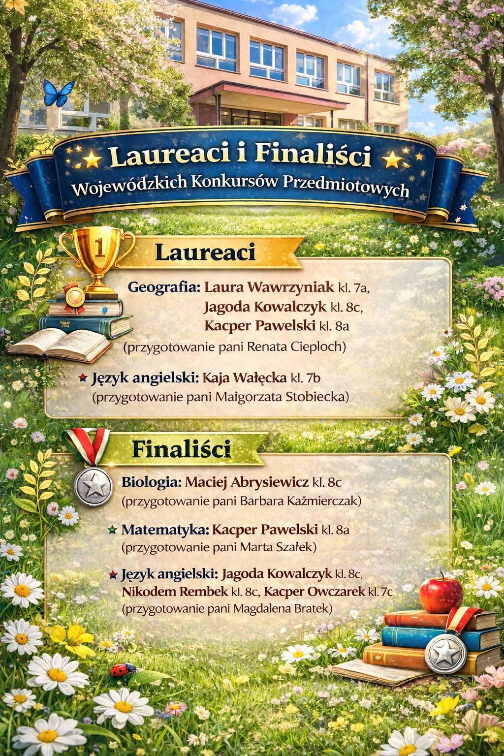 Z ogromną dumą informujemy o wspaniałych osiągnięciach uczniów naszej szkoły w Wojewódzkich Konkursach Przedmiotowych. Dzięki swojej wiedzy, wytrwałości i ciężkiej pracy zdobyli oni tytuły laureatów oraz finalistów. Serdecznie gratulujemy wszystkim uczniom oraz nauczycielom, którzy wspierali ich w przygotowaniach.