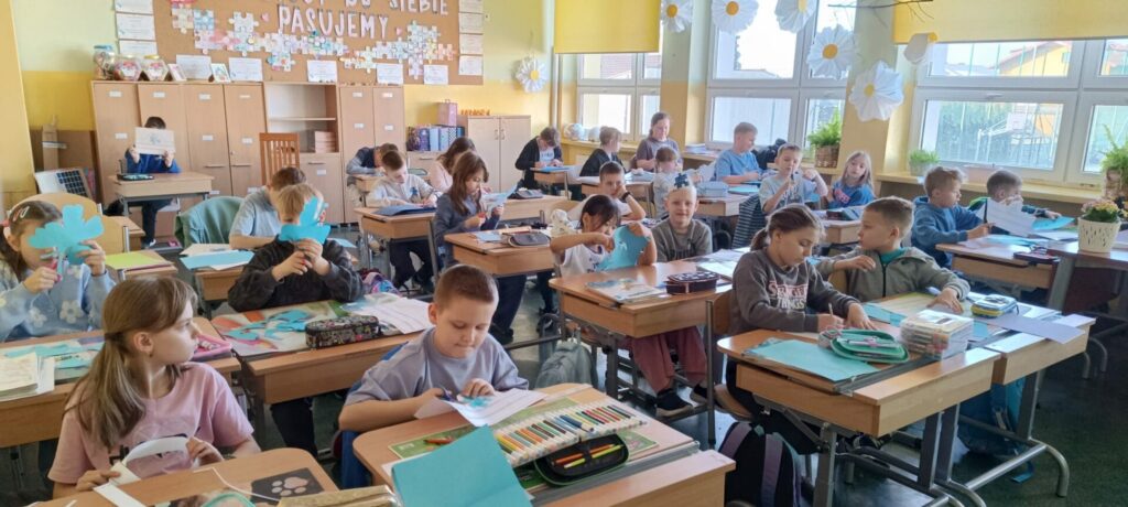 Korytarze wypełniły się kolorem niebieskim – wielu uczniów i nauczycieli założyło ubrania w tym barwach, dając jasny sygnał: „Jesteśmy z Wami!”. To prosty, ale silny gest jedności.