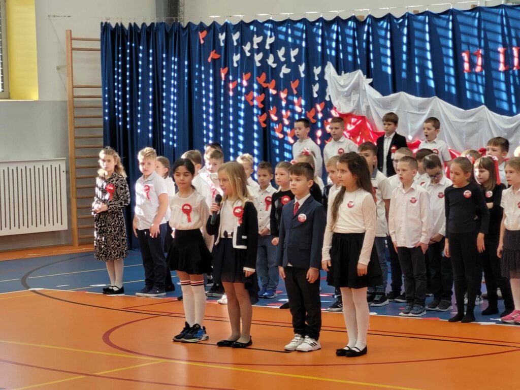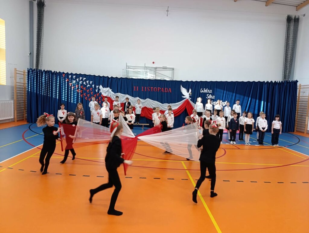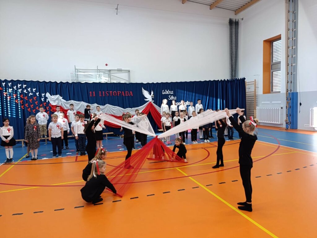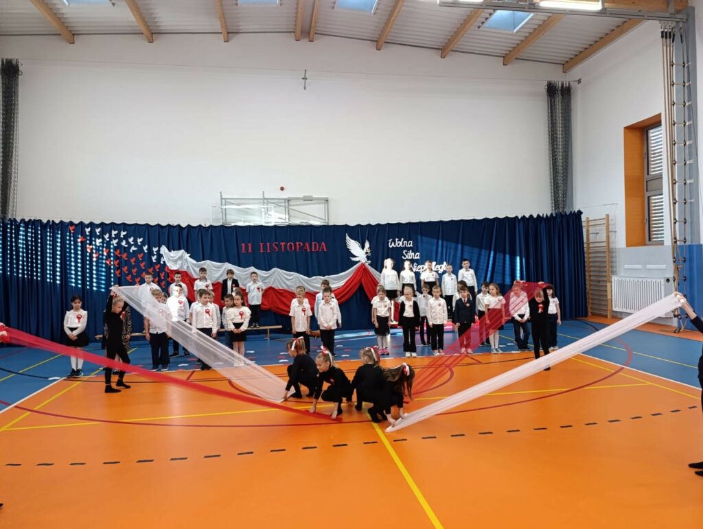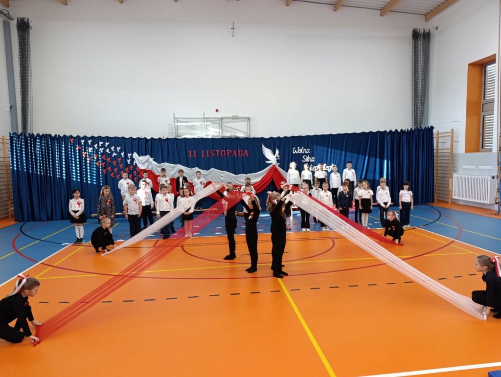 Szczególne wzruszenie przyniósł nam występ uczniów klas 2b i 2d. Ich pełne wrażliwości wystąpienie, w którym wybrzmiały słowa o Ojczyźnie, o jej trudnych drogach i o ludziach, którzy oddali za nią to, co najcenniejsze. Kluczowy był również przepiękny taniec ze wstęgami, który poruszył nasze serca. Była w nim lekkość, ale i ogromna siła. Było piękno, ale i pamięć. Było coś, co trudno opisać — to uczucie, że jesteśmy częścią historii, która nieustannie trwa.