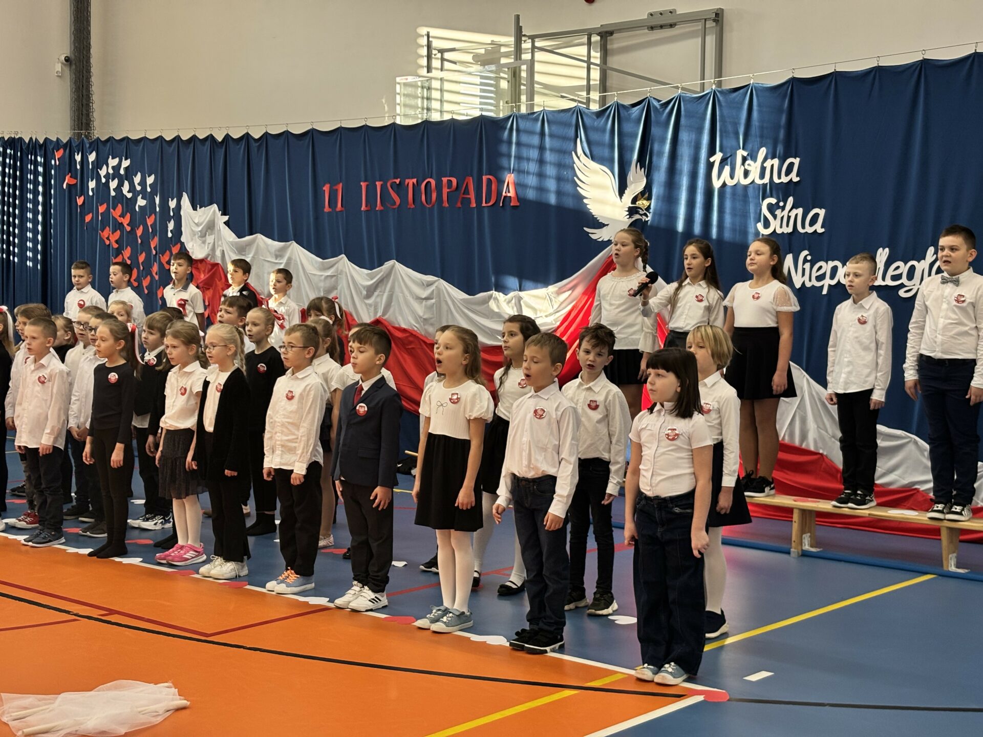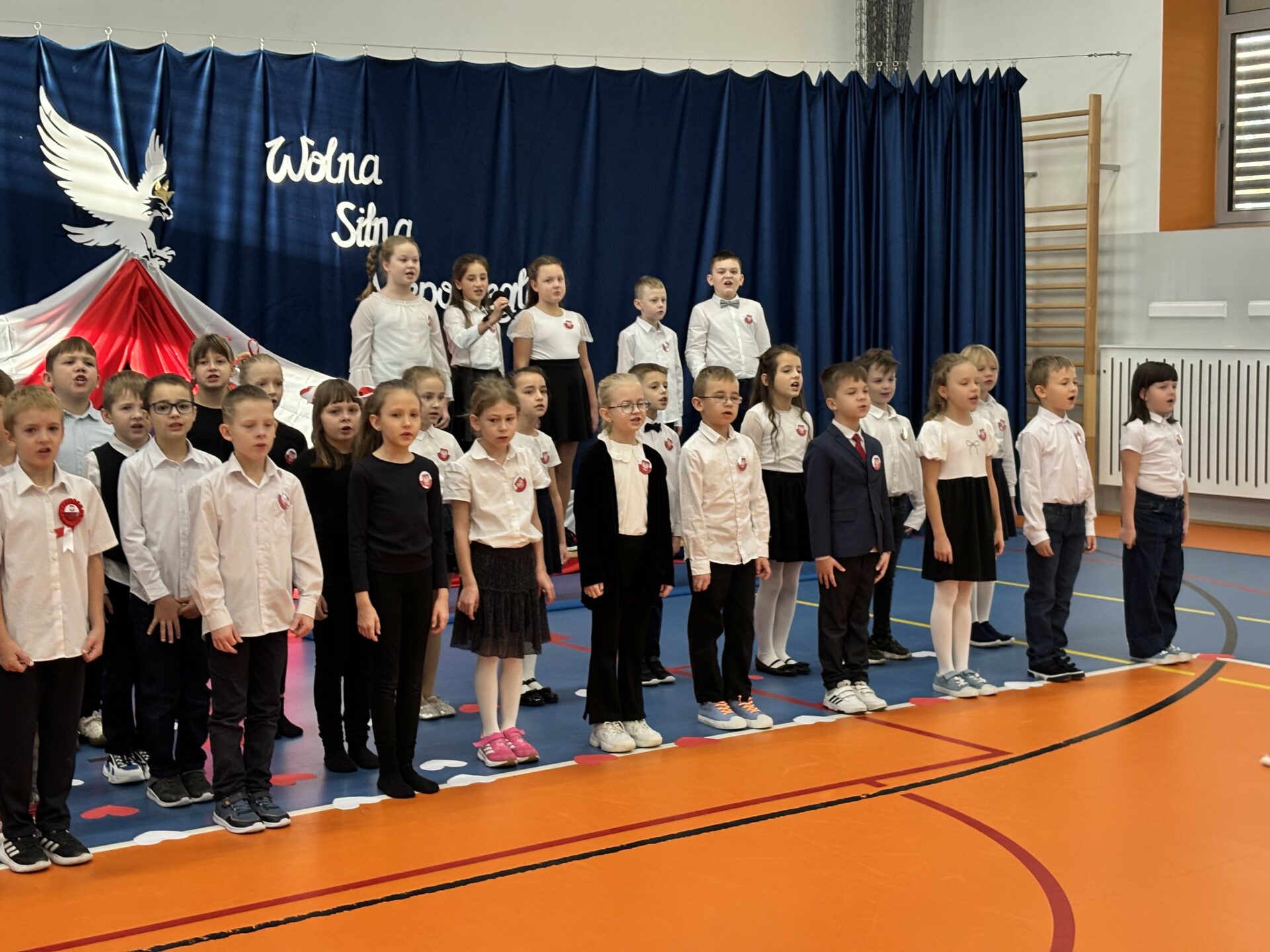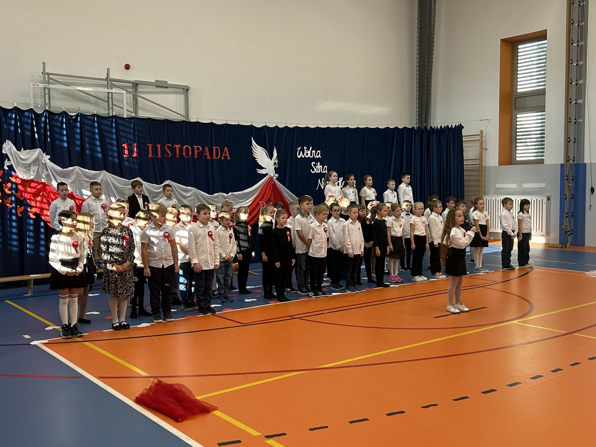 Szczególne wzruszenie przyniósł nam występ uczniów klas 2b i 2d. Ich pełne wrażliwości wystąpienie, w którym wybrzmiały słowa o Ojczyźnie, o jej trudnych drogach i o ludziach, którzy oddali za nią to, co najcenniejsze. Kluczowy był również przepiękny taniec ze wstęgami, który poruszył nasze serca. Była w nim lekkość, ale i ogromna siła. Było piękno, ale i pamięć. Było coś, co trudno opisać — to uczucie, że jesteśmy częścią historii, która nieustannie trwa.