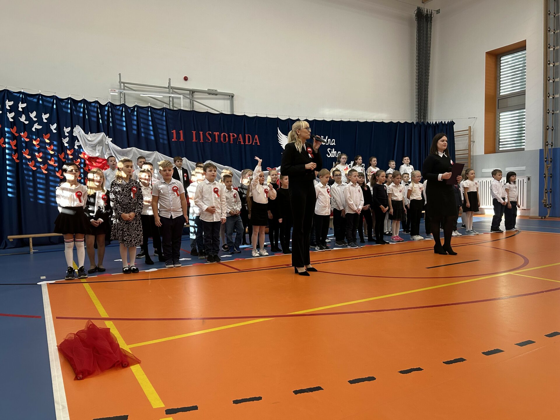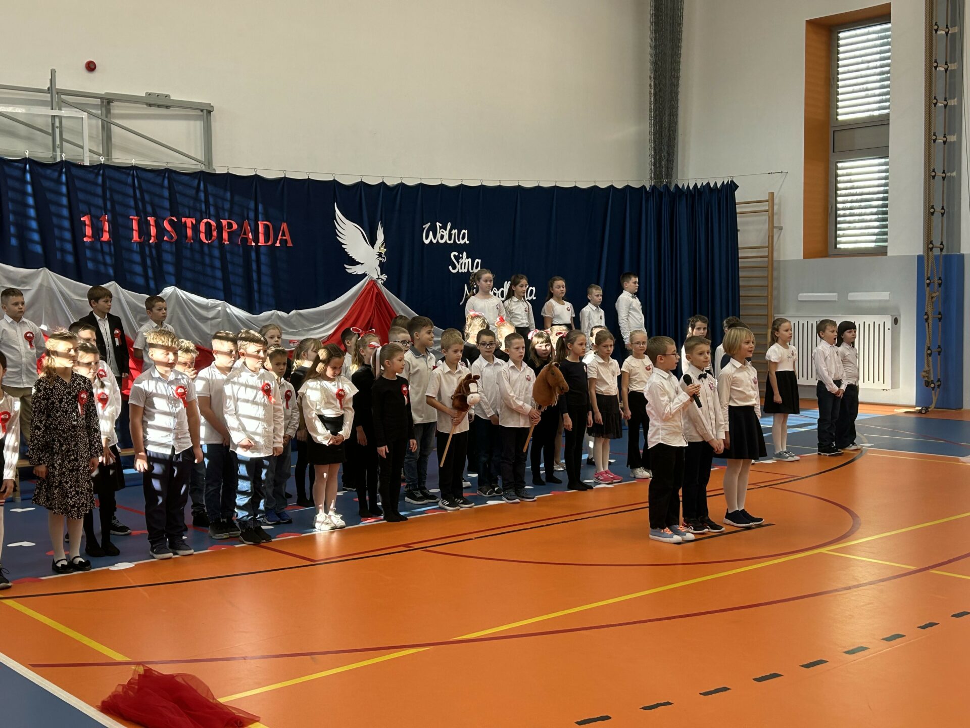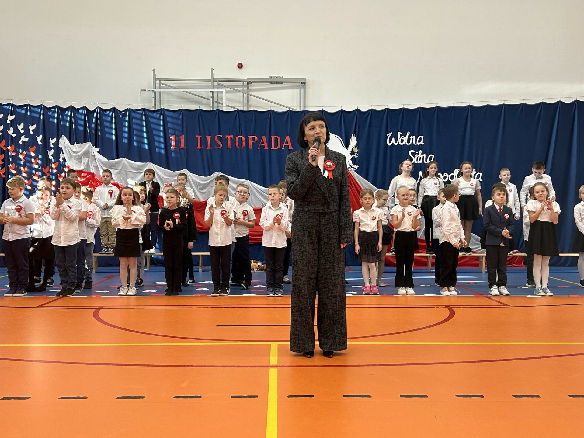 Szczególne wzruszenie przyniósł nam występ uczniów klas 2b i 2d. Ich pełne wrażliwości wystąpienie, w którym wybrzmiały słowa o Ojczyźnie, o jej trudnych drogach i o ludziach, którzy oddali za nią to, co najcenniejsze. Kluczowy był również przepiękny taniec ze wstęgami, który poruszył nasze serca. Była w nim lekkość, ale i ogromna siła. Było piękno, ale i pamięć. Było coś, co trudno opisać — to uczucie, że jesteśmy częścią historii, która nieustannie trwa.