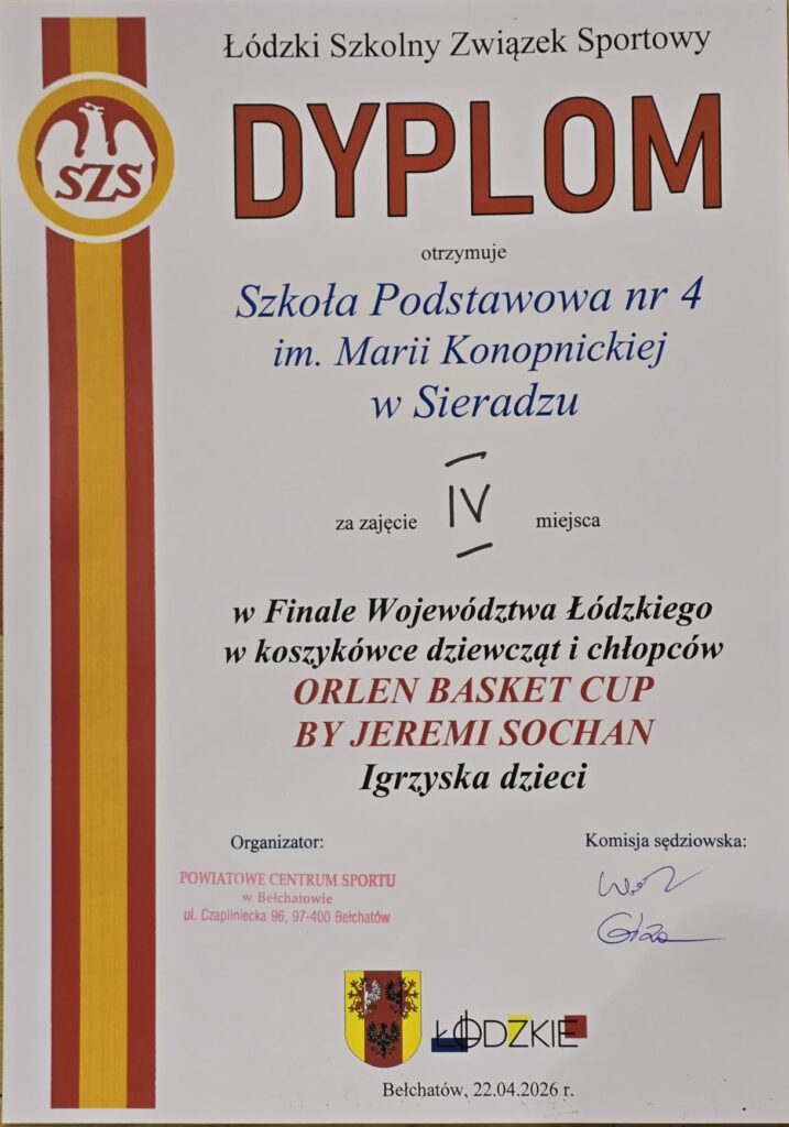 W dniu dzisiejszym reprezentacja dziewcząt naszej szkoły bardzo udanie zaprezentowała się na Finałach Wojewódzkich Igrzysk Dzieci w mini piłce koszykowej – Orlen Basket Cup by Jeremy Sochan, kończąc rozgrywki na IV miejscu.
