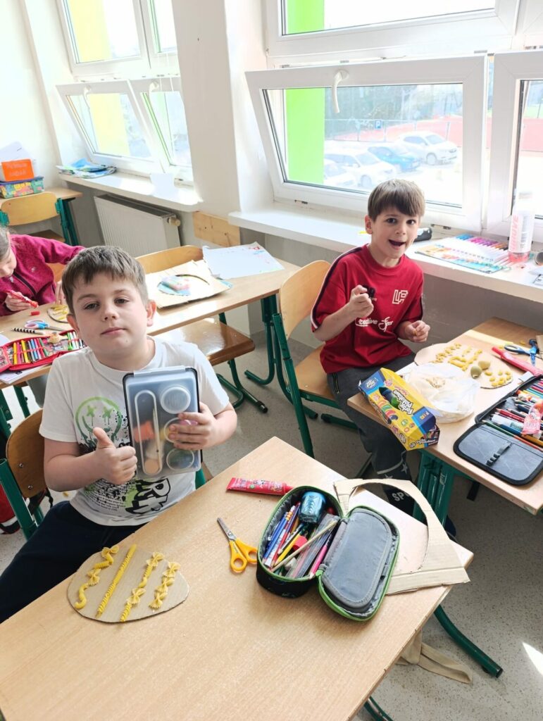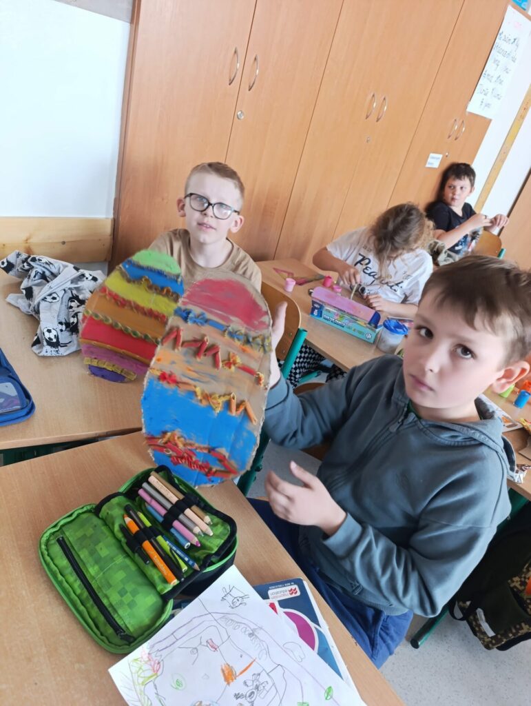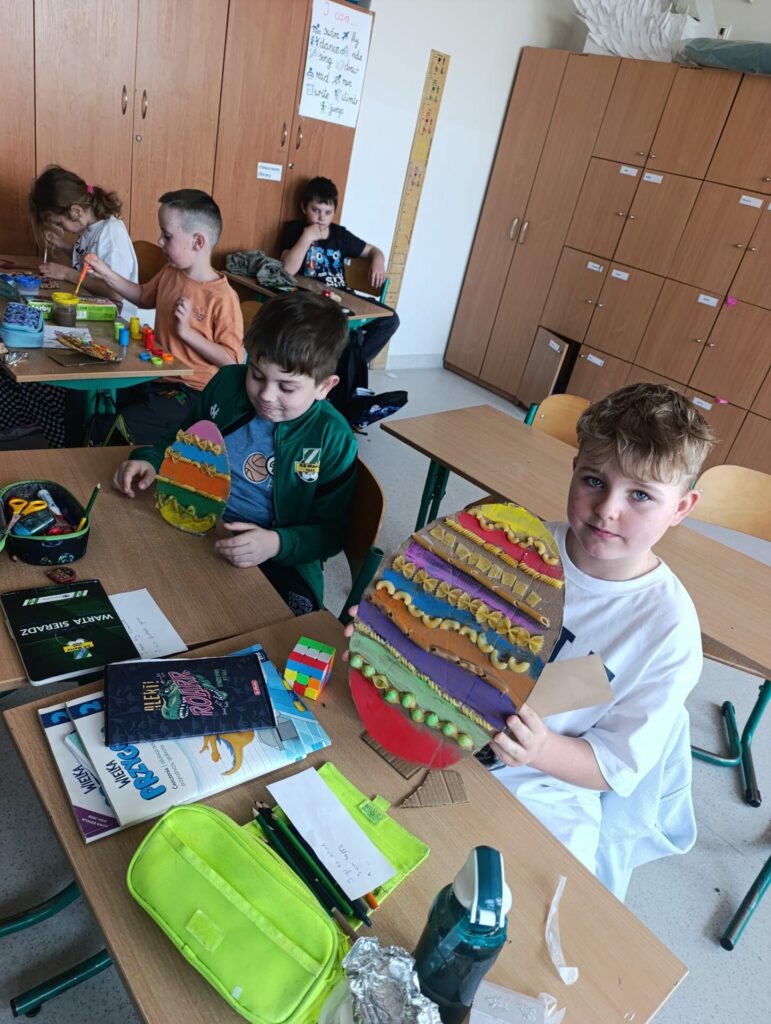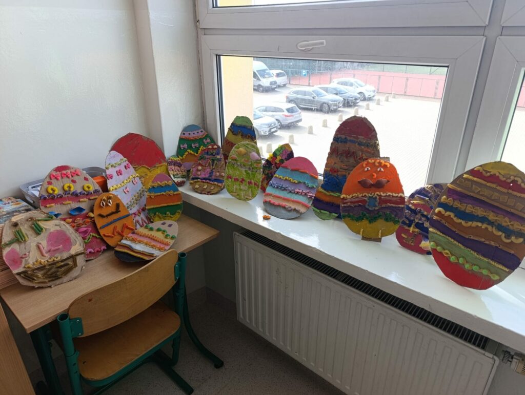 W klasie 2d wprowadzamy wiosenno-świąteczny klimat. Podczas zajęć plastyczno-technicznych uczniowie z zapałem zabrali się do pracy i wykonali piękne kolorowe jajka, które zdobią naszą salę. Proces twórczy odbywał się przy anglojęzycznych piosenkach o wiośnie, dzięki czemu dzieci szlifują swoje umiejętności językowe i przyswajają nowe słówka, łączymy przyjemne z pożytecznym, zobaczcie sami.