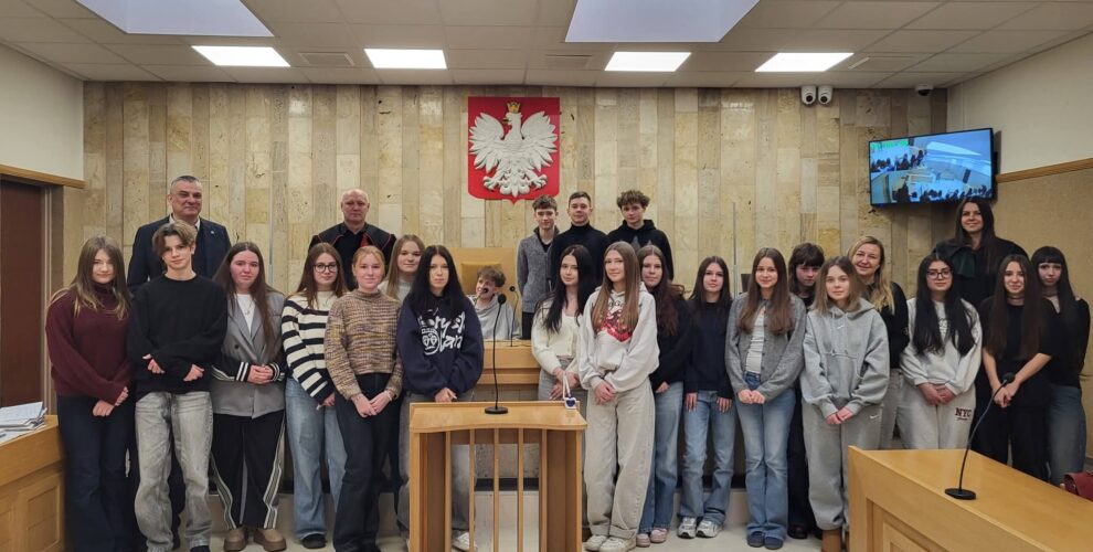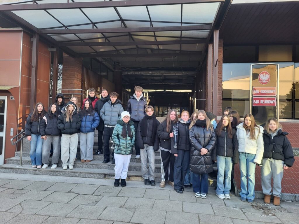W dniu 22 stycznia klasa 8b wraz z wychowawcą udała się na wyjście edukacyjne do Sądu Rejonowego w Sieradzu. Podczas wizyty mieliśmy okazję uczestniczyć w dwóch rozprawach sądowych. Pierwsza z nich dotyczyła znęcania się nad rodziną oraz psem, natomiast druga związana była z handlem narkotykami.