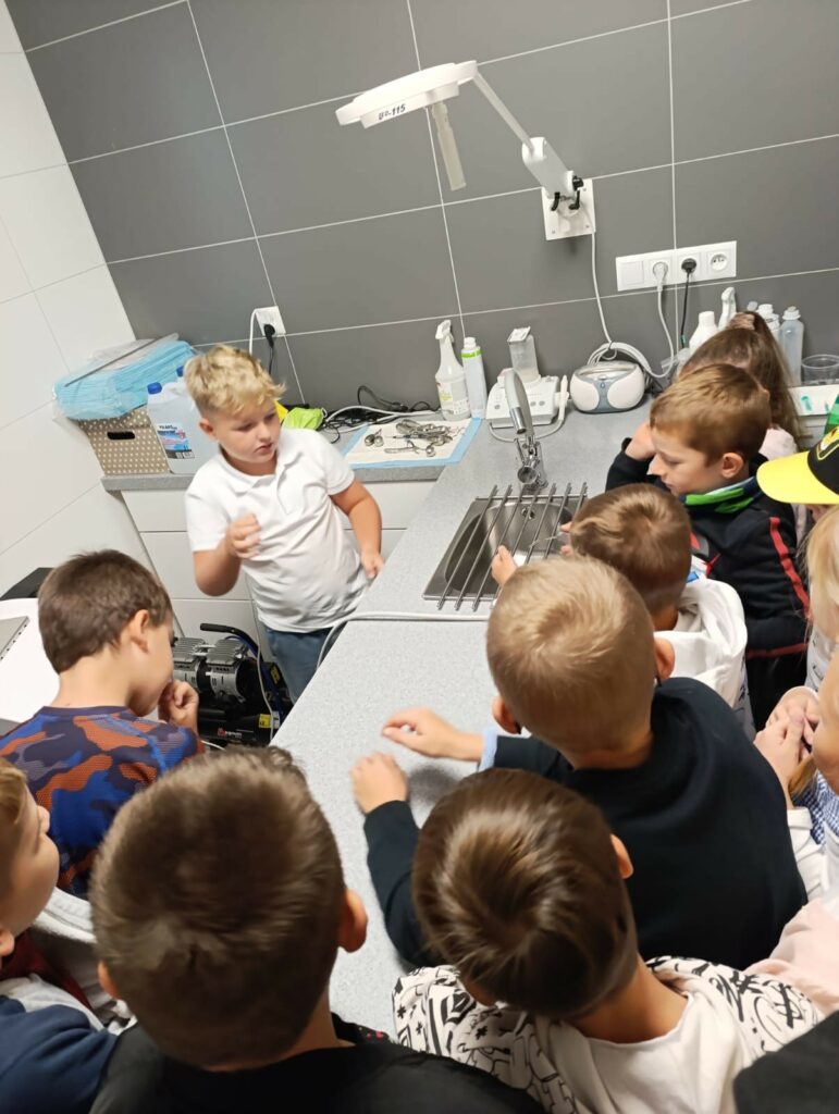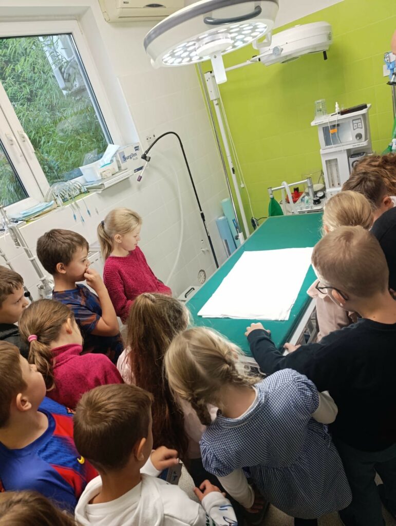 W dniu dzisiejszym klasa 2d obchodziła Dzień Chłopca. Świętowanie połączyliśmy z wyjątkowymi odwiedzinami w przychodni weterynaryjnej ‘Zwierzyniec’ dzięki uprzejmości właścicieli uczniowie mogli zobaczyć ‘od środka’, jak wygląda praca lekarza weterynarii. Jak się okazało, jest to zawód przyjemny i bardzo potrzebny, ale także niezwykle trudny i wymagający. Podglądając kulisy tej pracy dzieci mogły dowiedzieć się, jak wykonać rentgen, badanie USG czy w jaki sposób obsługuje się mikroskop czekały na nas także inne atrakcje w postaci układanek z kości zwierząt oraz krzyżówki z nagrodami. W drodze powrotnej każdy mógł wybrać dla siebie coś słodkiego i posilić się już w klasie, w towarzystwie kolegów i koleżanek, to był bardzo udany dzień, a nasi wspaniali chłopcy zakończyli go z wielkimi uśmiechami na buziach.