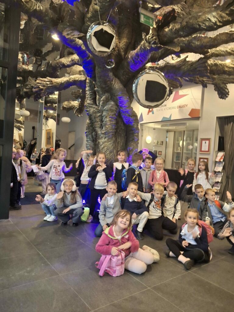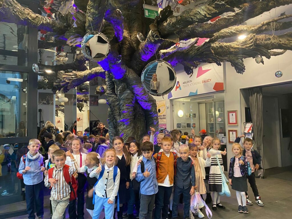 30 września nasi najmłodsi uczniowie – pierwszoklasiści – wybrali się do Teatru Arlekin w Łodzi, aby obejrzeć wyjątkowe przedstawienie pt. „Dzieci i ryby”. Spektakl poruszał ważne tematy dotyczące emocji, praw dziecka oraz przypomniał o istnieniu telefonów zaufania, do których dzieci mogą zwrócić się w trudnych sytuacjach. Wyjazd był nie tylko okazją do spotkania ze sztuką, ale także do refleksji nad wartościami, które są istotne w codziennym życiu.
