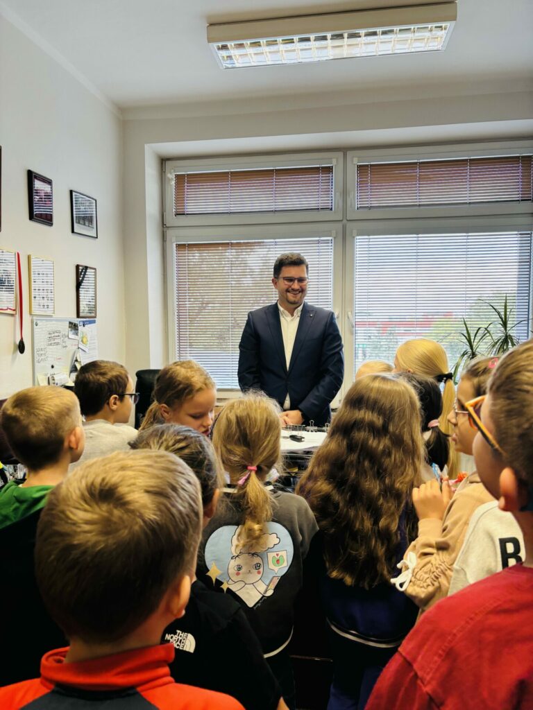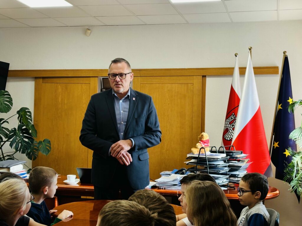 29.09 klasa II b odwiedziła Urząd Miasta Sieradz. Mieliśmy zaszczyt spotkać się z Panem Prezydentem Pawłem Osiewałą oraz Panem Przewodniczącym Michałem Pabichem. Spotkanie było doskonałą okazją do rozmowy o sprawach ważnych dla naszej społeczności i poznania pracy samorządu od środka.