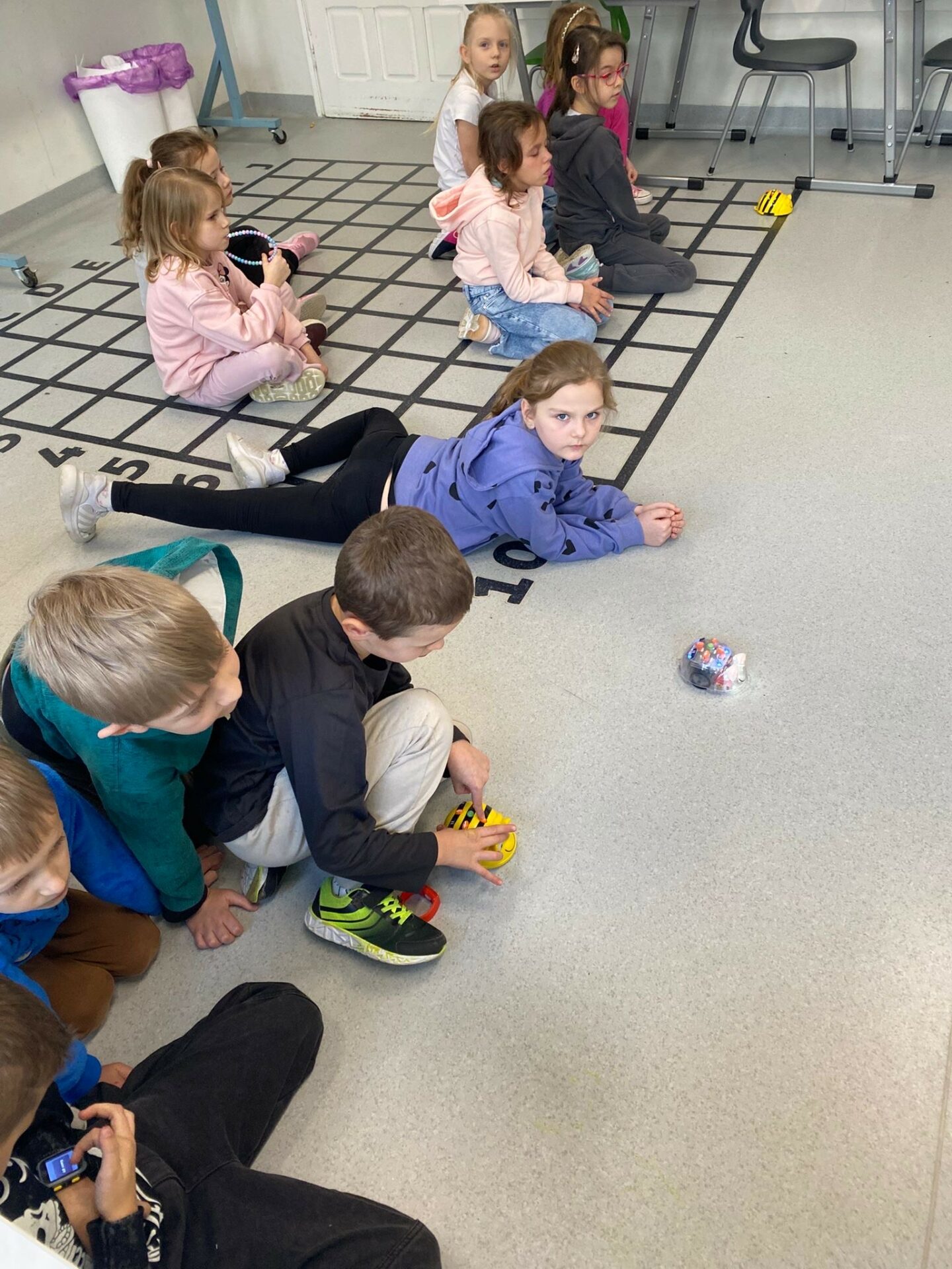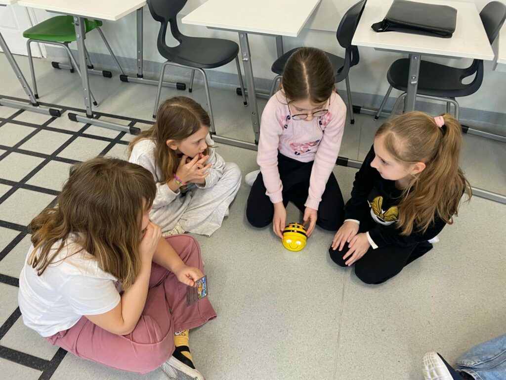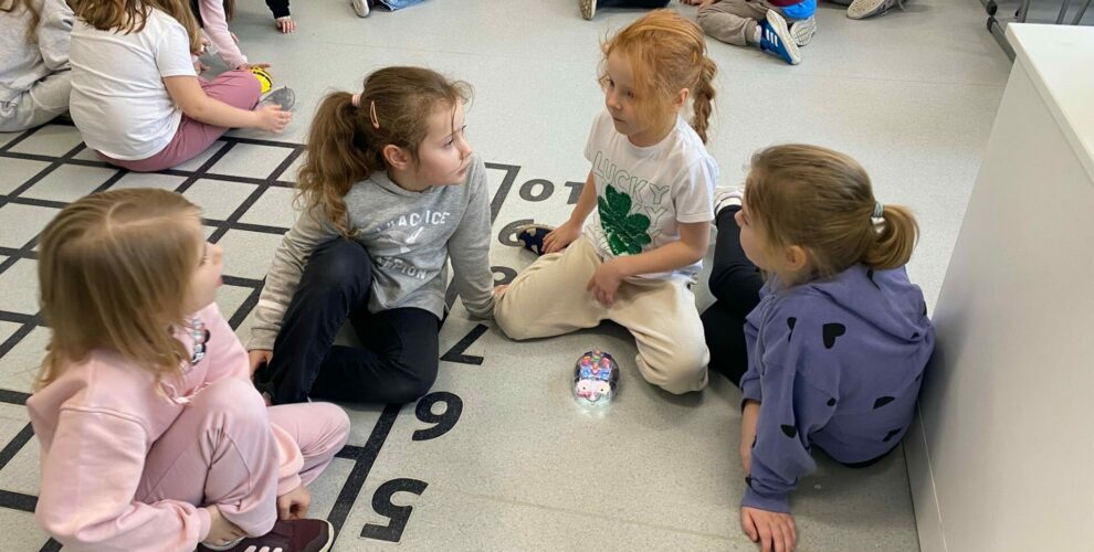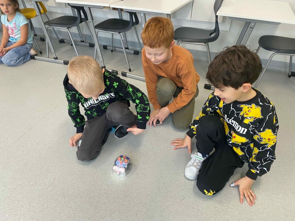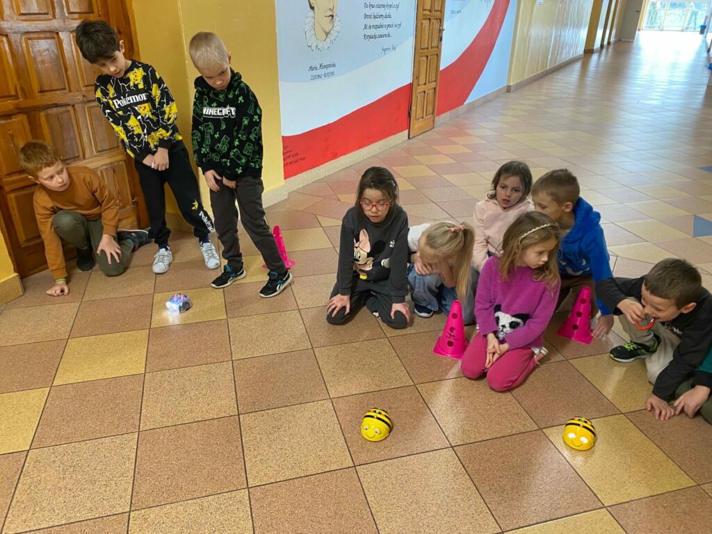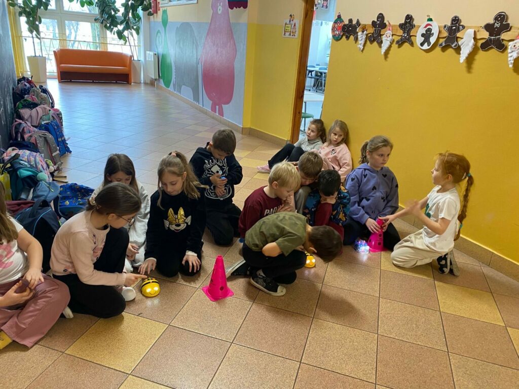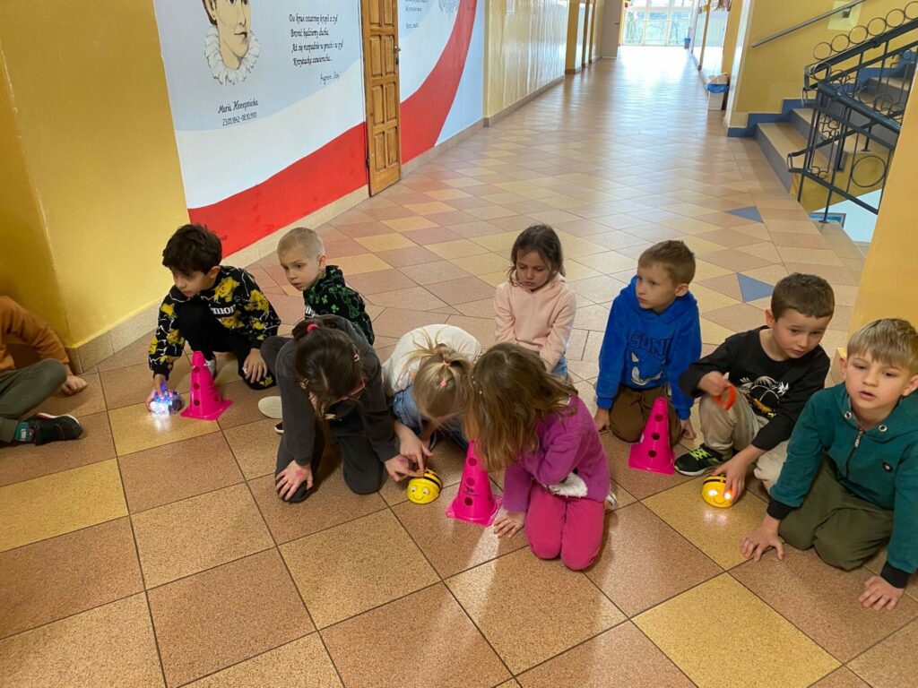 Uczniowie klasy 1a podczas zajęć Klubu Małego Kodera poznawali robota Bee-Bot. Dzieci ćwiczyły orientację przestrzenną, uczyły się logicznego myślenia oraz wykonywały zabawne i angażujące zadania z wykorzystaniem robota. Zajęcia dostarczyły uczniom wiele radości, a nauka poprzez zabawę okazała się bardzo ciekawym doświadczeniem.