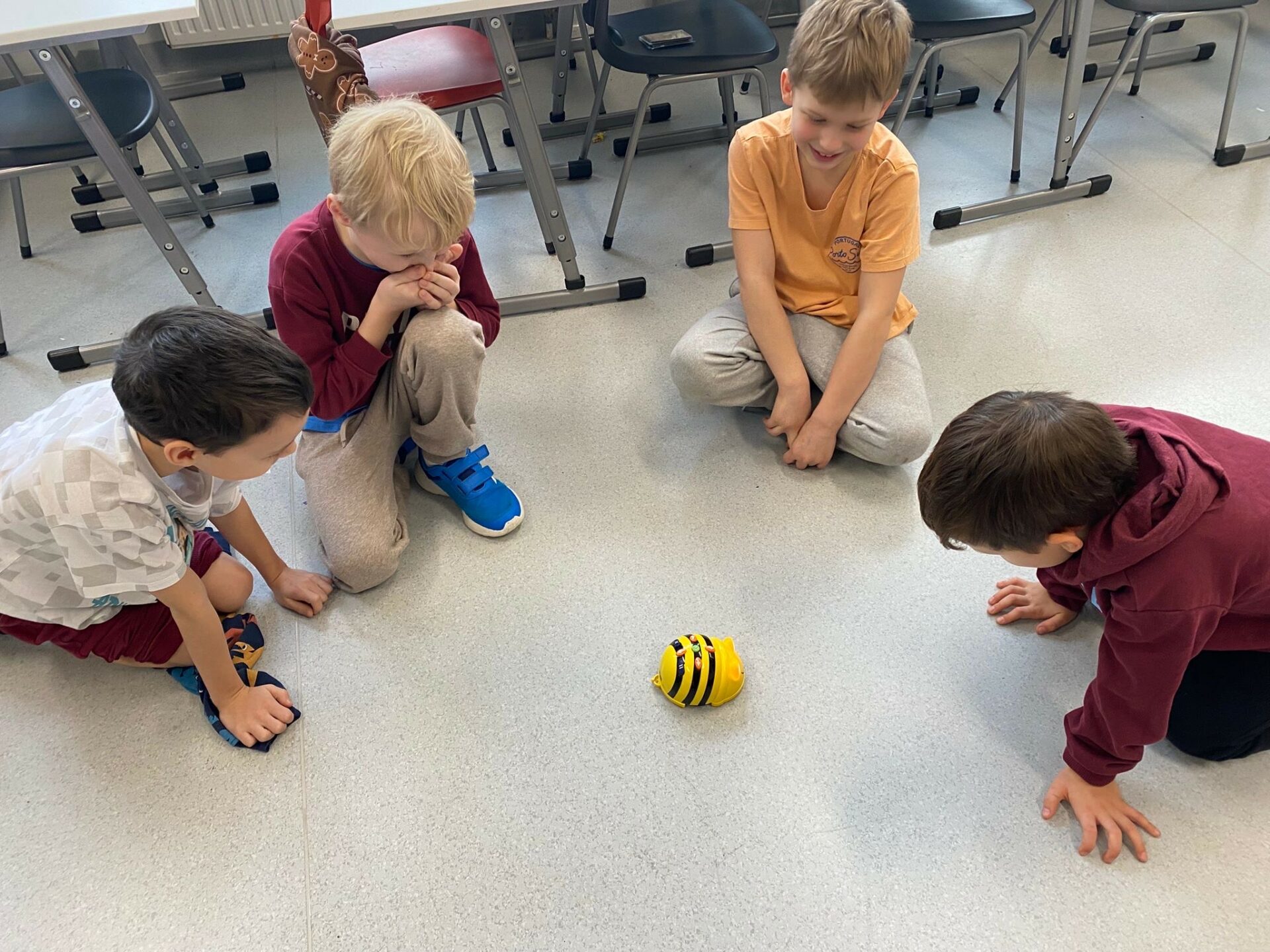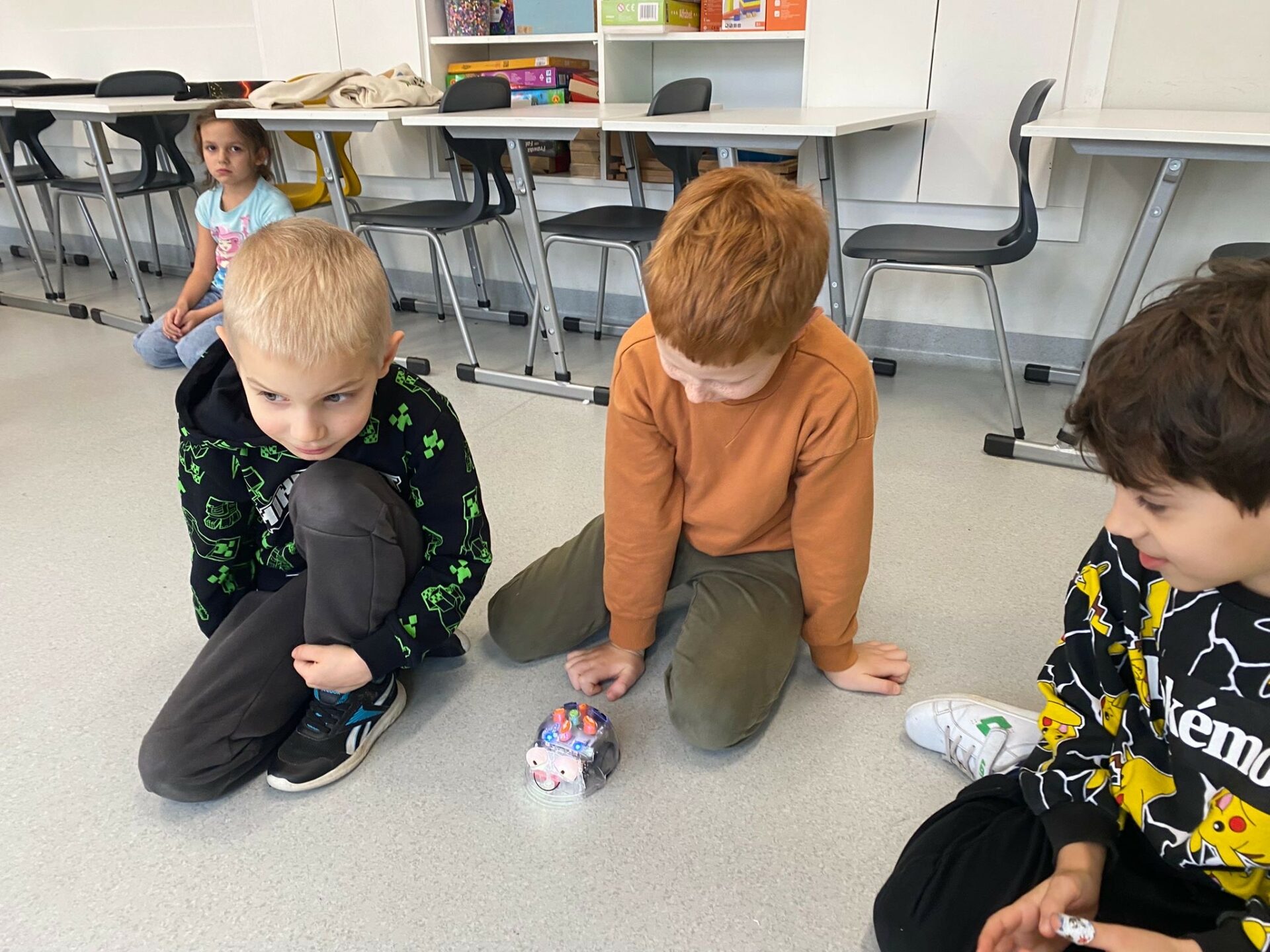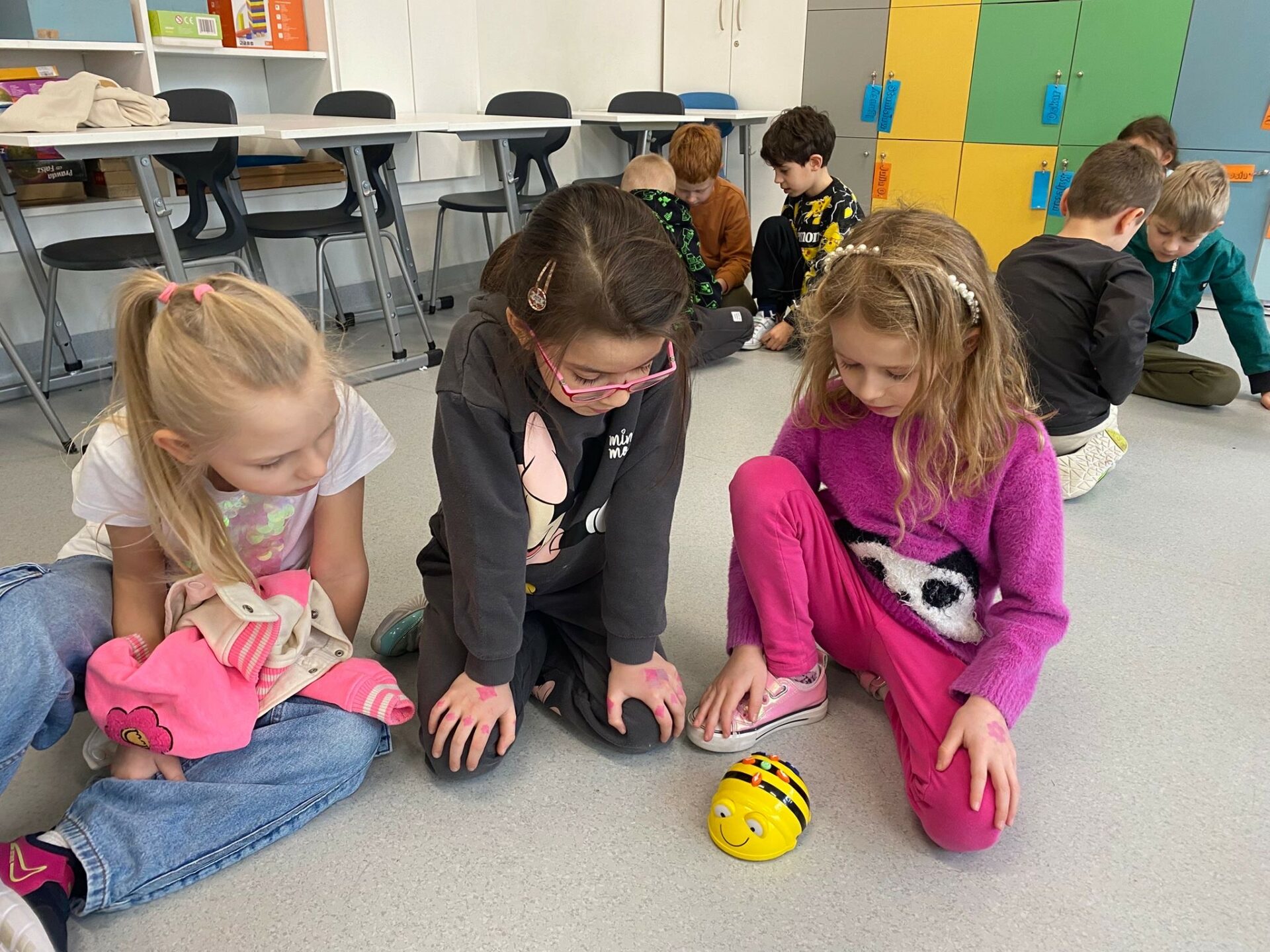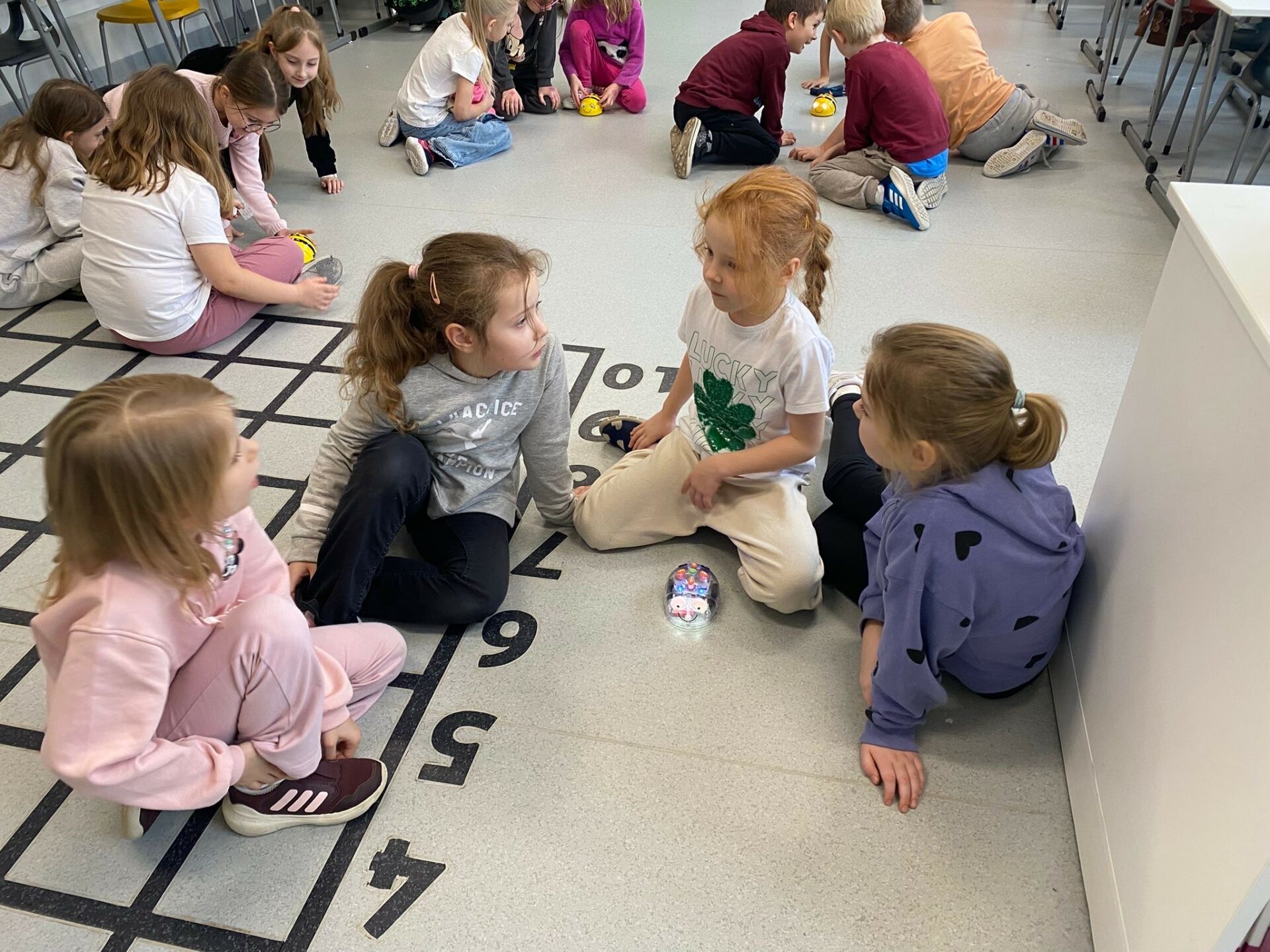 Uczniowie klasy 1a podczas zajęć Klubu Małego Kodera poznawali robota Bee-Bot. Dzieci ćwiczyły orientację przestrzenną, uczyły się logicznego myślenia oraz wykonywały zabawne i angażujące zadania z wykorzystaniem robota. Zajęcia dostarczyły uczniom wiele radości, a nauka poprzez zabawę okazała się bardzo ciekawym doświadczeniem.
